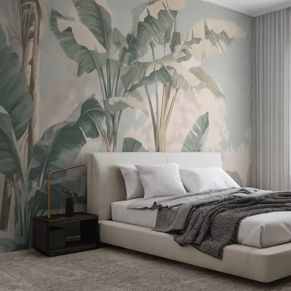 Fototapeten Tropische Bananenblätter in sanften Pastelltönen N° w09311