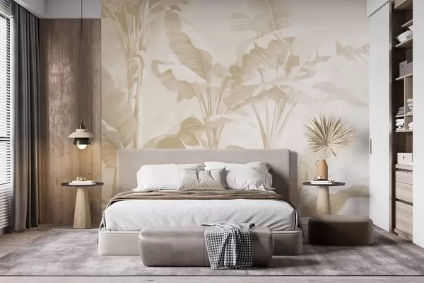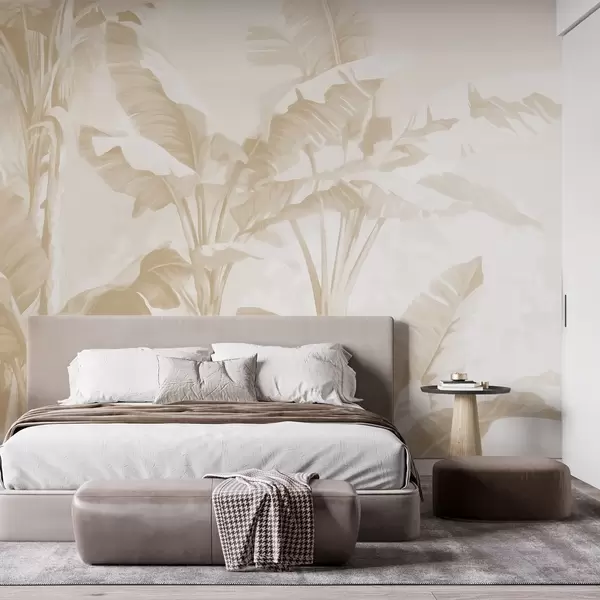 Fototapeten Tropische Bananenblätter in sanften Beigetönen N° w09311v2