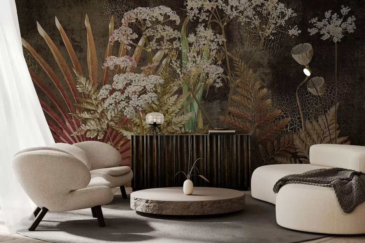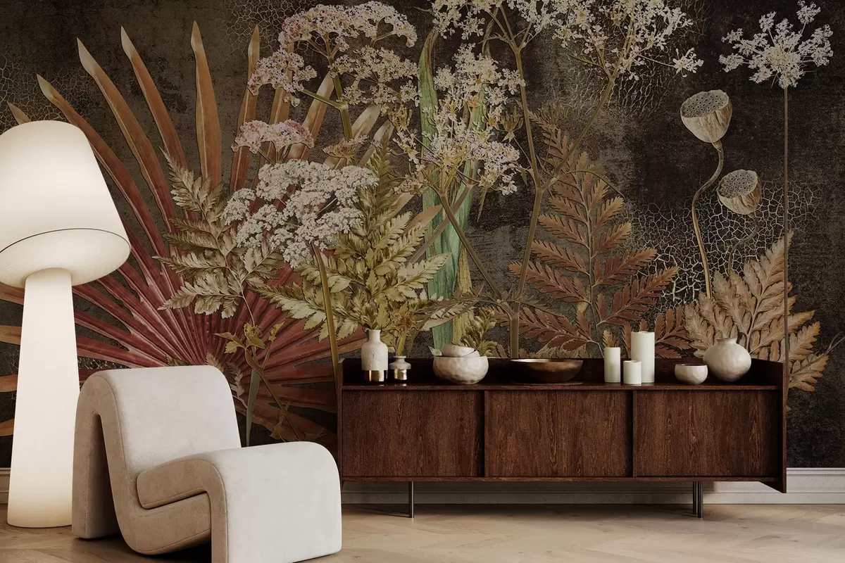 Fototapeten Herbarium auf dunklem Hintergrund N° w09323