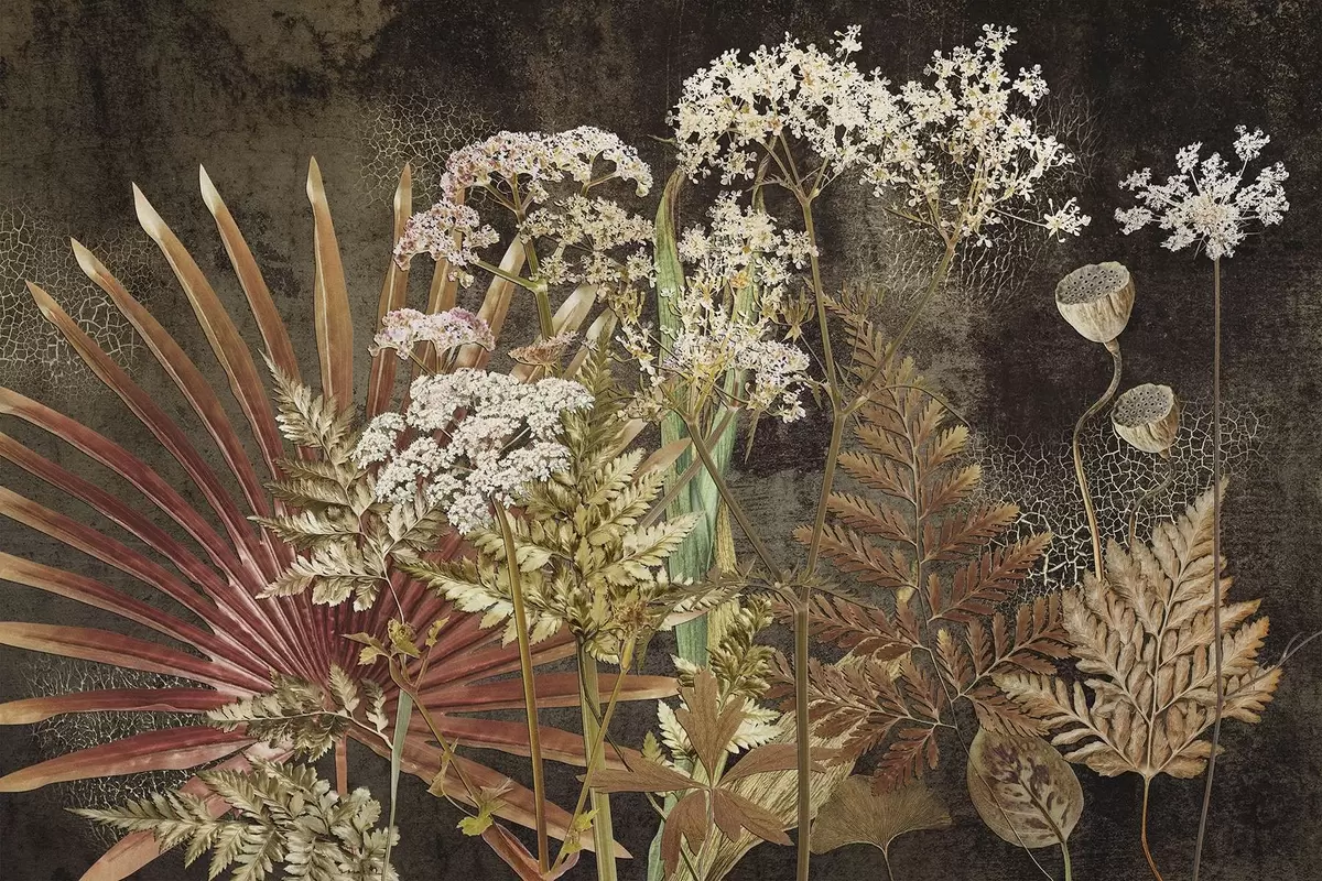Fototapeten Herbarium auf dunklem Hintergrund N° w09323