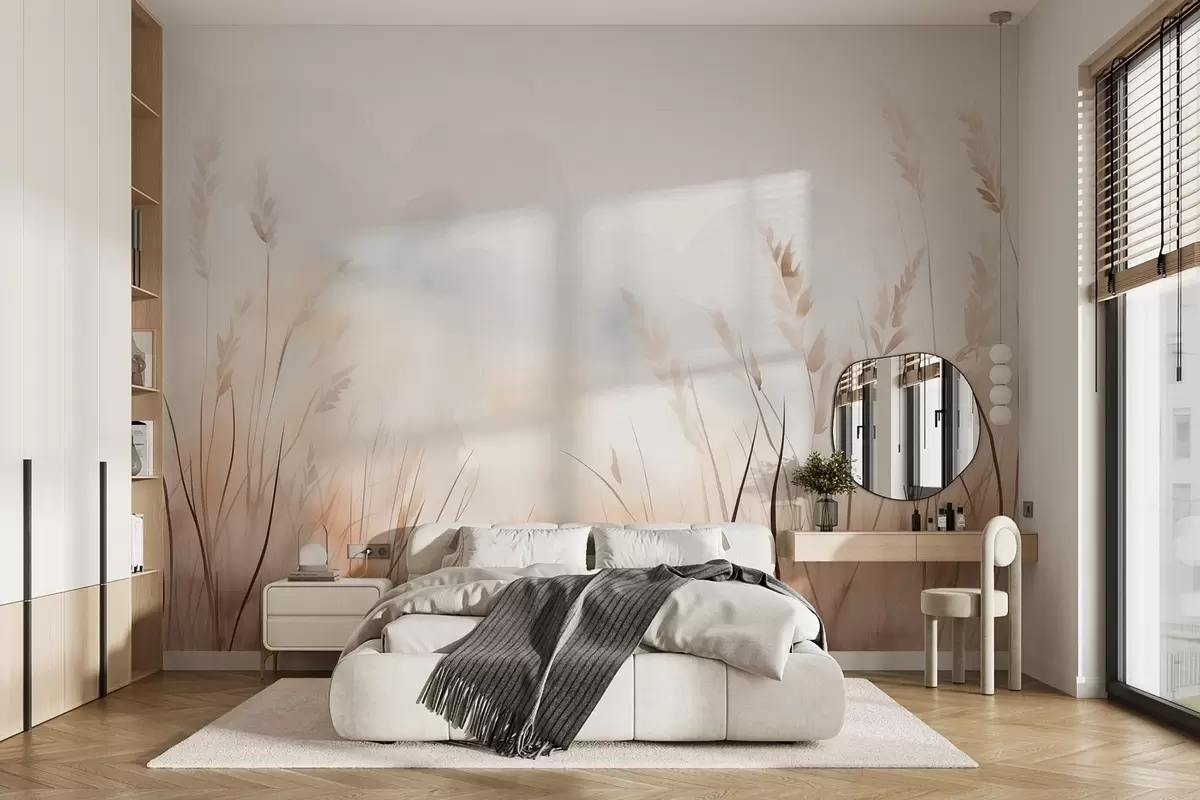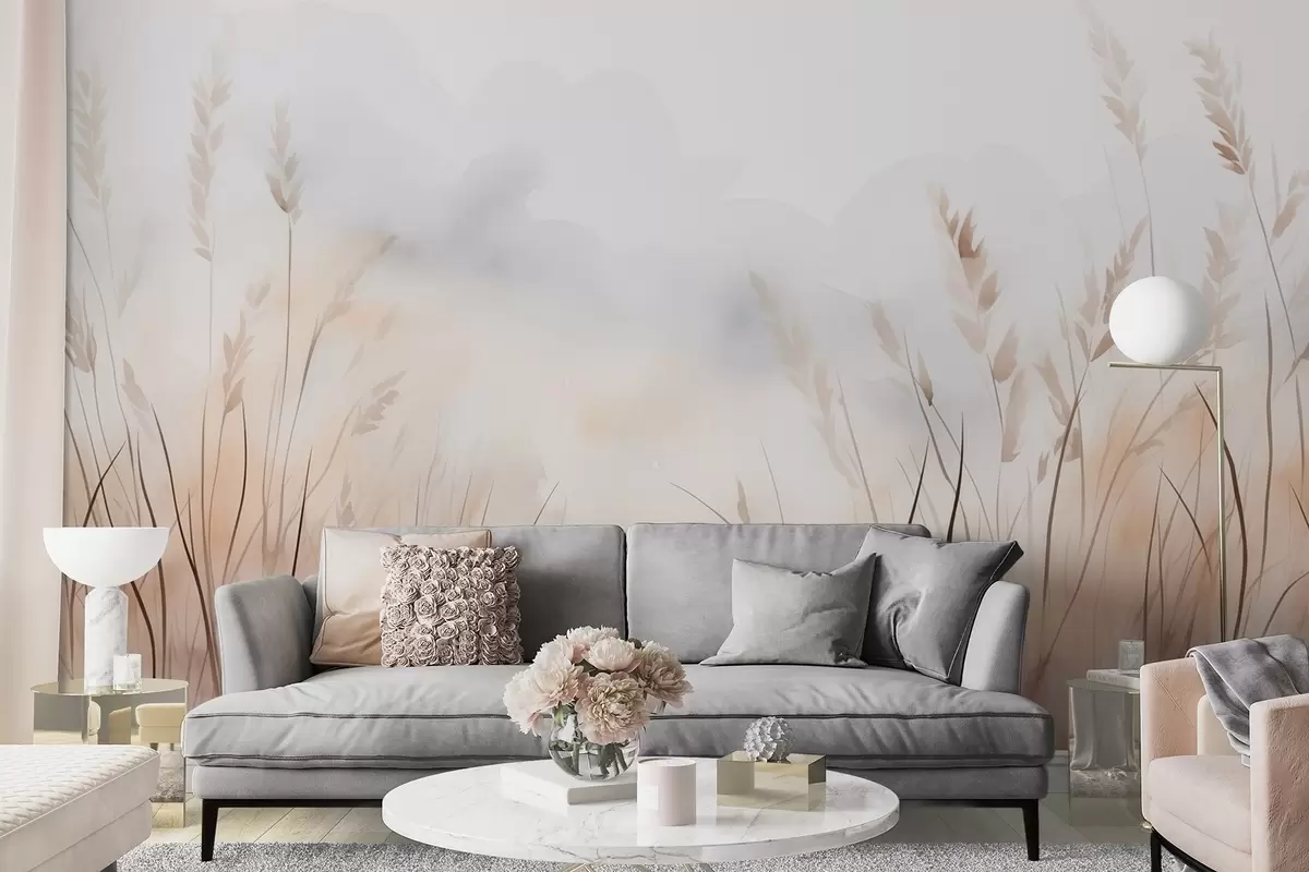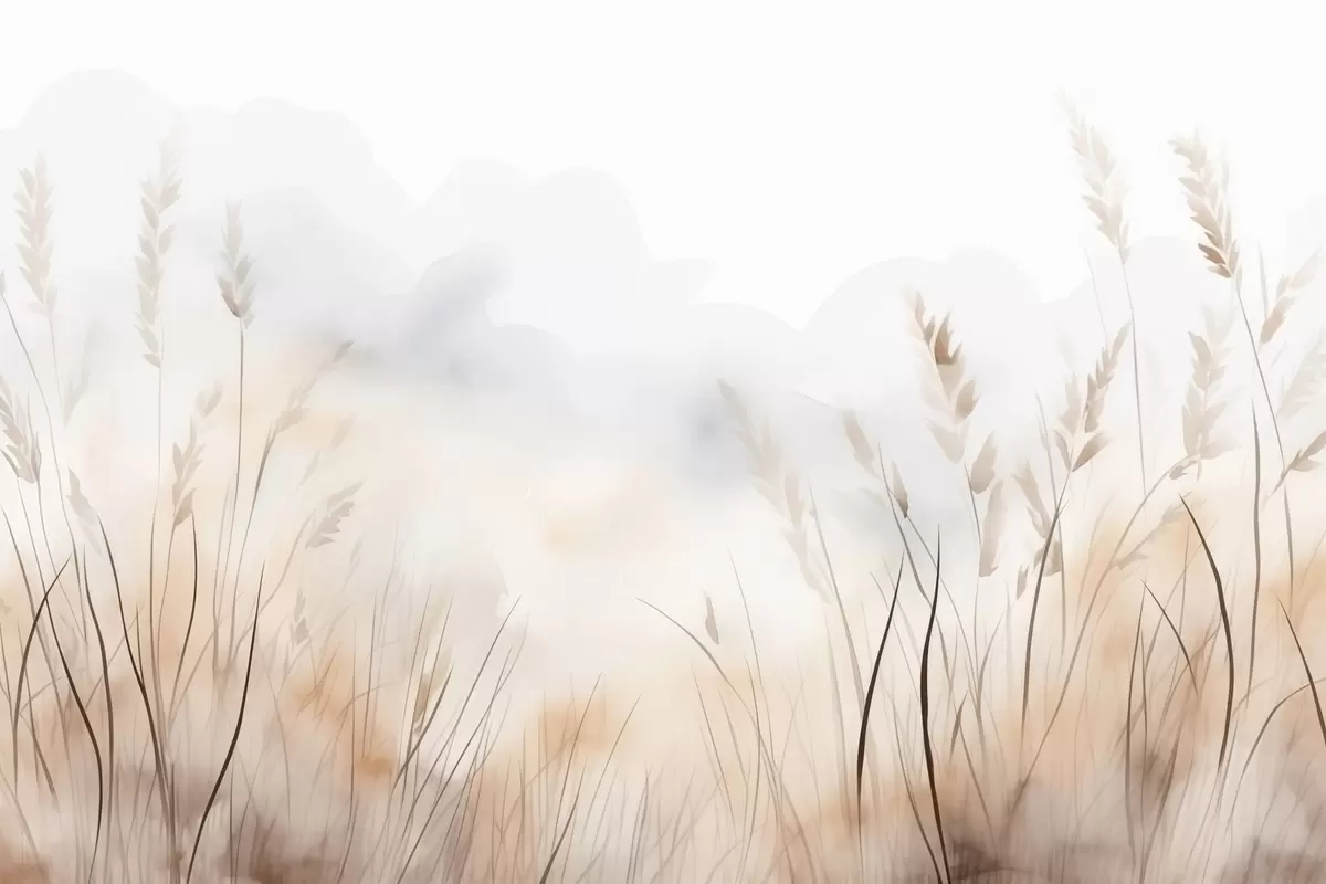 Fototapeten Getreideähren in Nebel in sanften Beige- und Brauntönen N° w09327