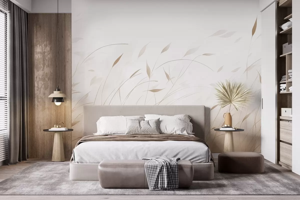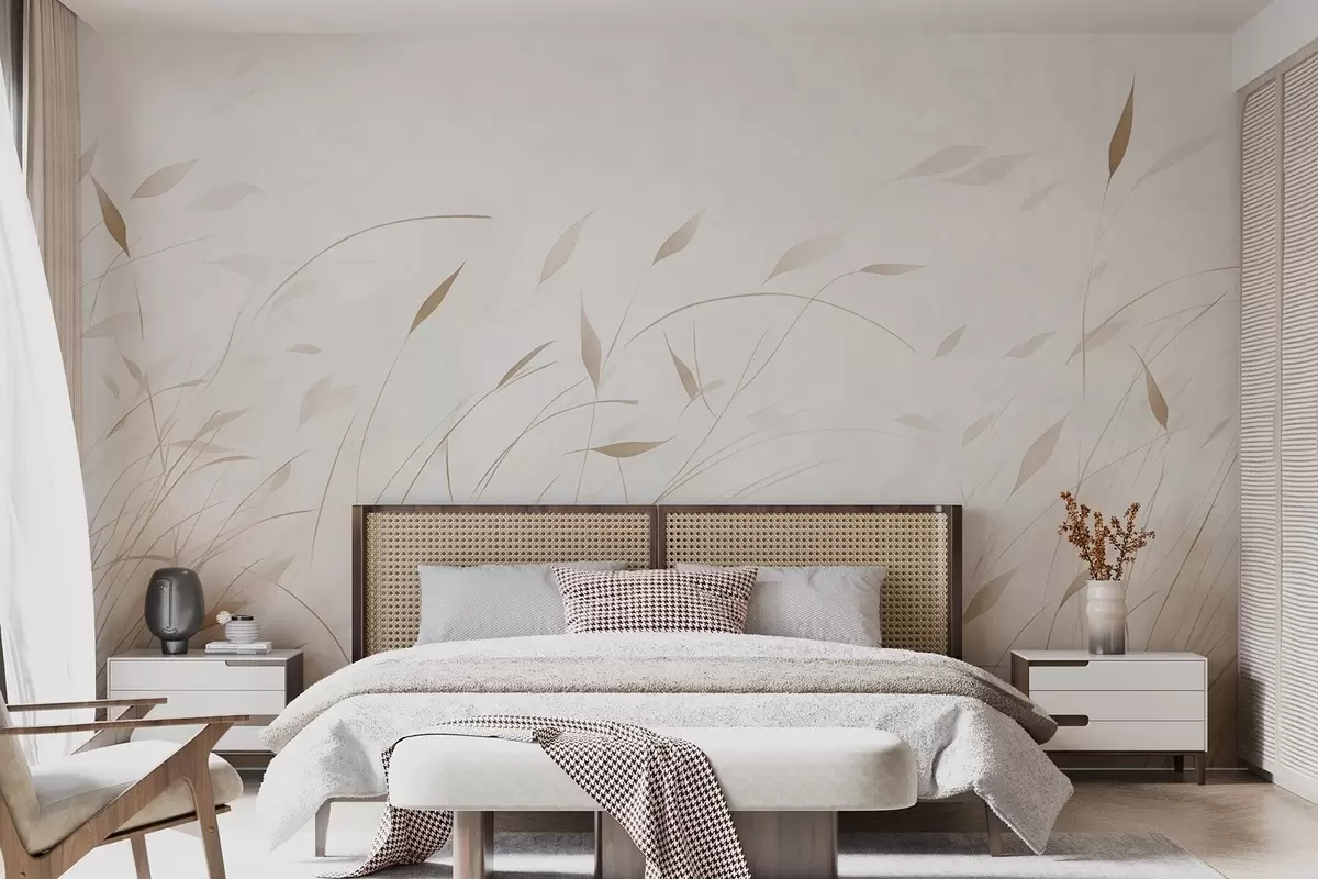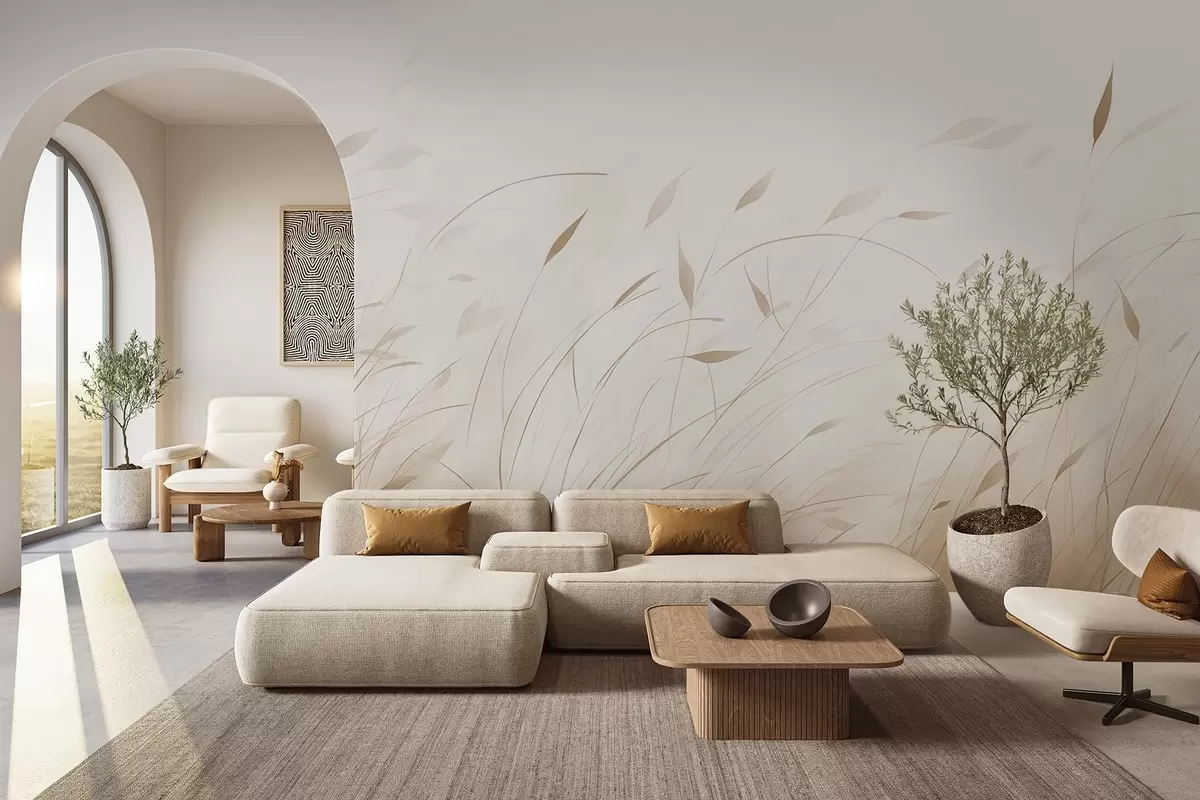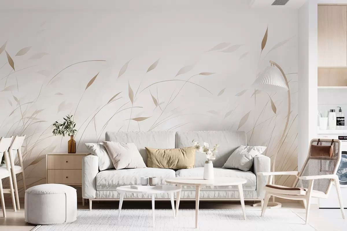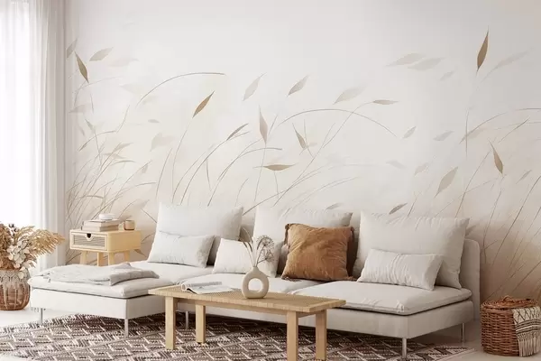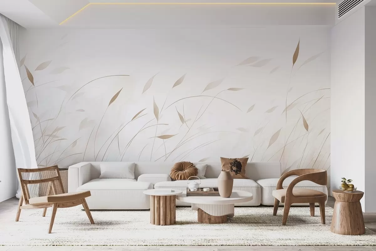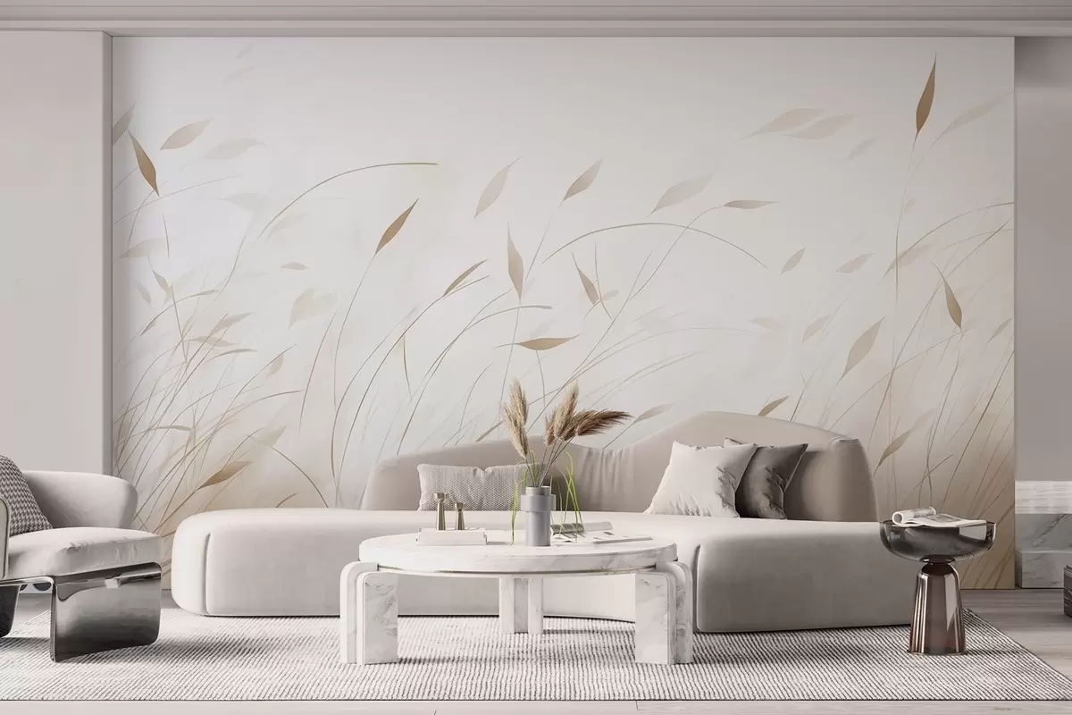 Fototapeten Gras im Wind in Aquarellstil in Beigetönen N° w09331v1