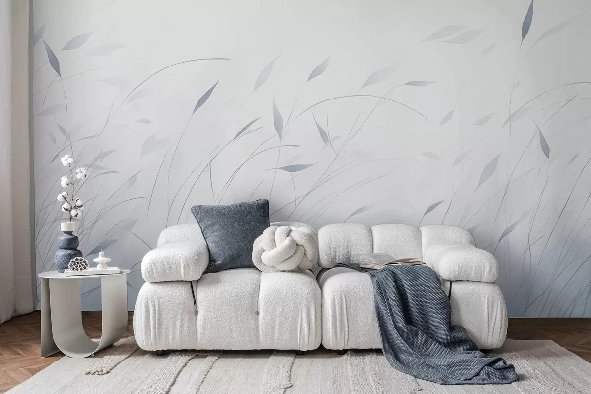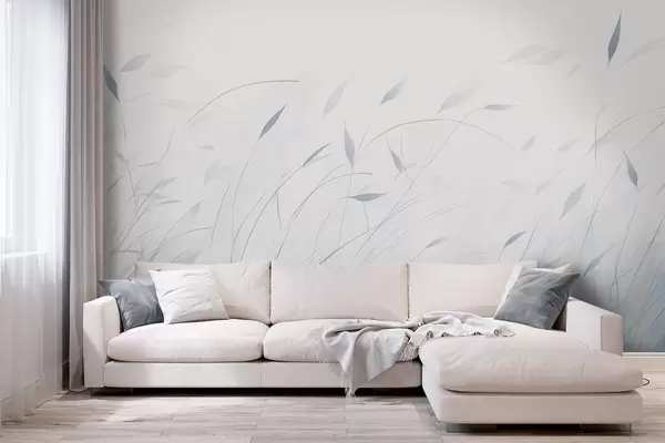 Fototapeten Gras im Wind in Aquarellstil in Blautönen N° w09331v2