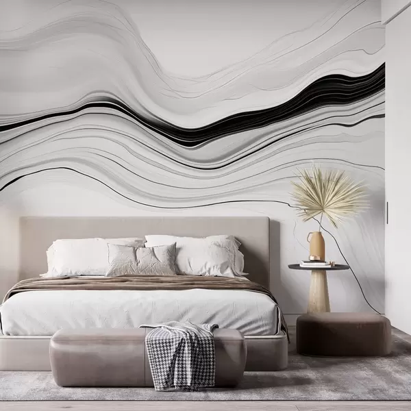 Fototapeten Schwarzes und weißes Muster mit dem Effekt von Marmorschichten N° w09358