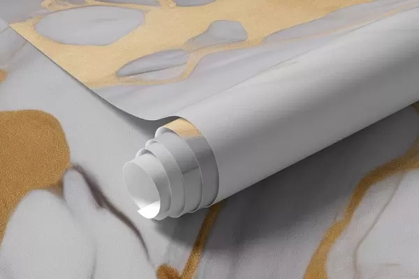 Fototapeten Nachahmung einer Marmorstruktur mit weichen grauen Übergängen und gelben Akzenten N° w09362