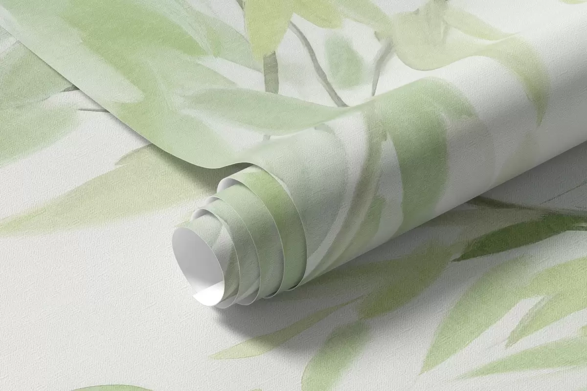 Fototapeten Trauerweidenzweige mit herabhängenden grünen Blättern, weiche und zarte Pinselstriche, Aquarellmalstil N° w09365