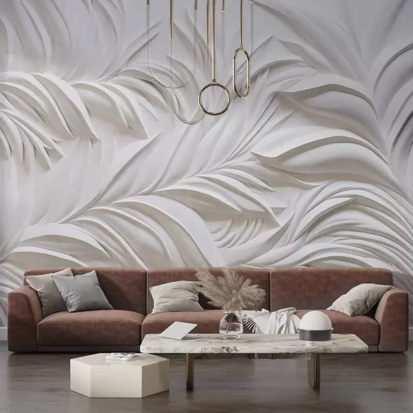 Fototapeten Abstrakte, strukturierte weiße Blätter und florale Elemente, minimalistische Ästhetik N° w09378