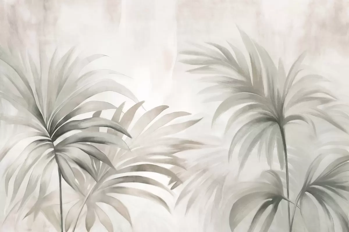 Fototapeten Palme strukturierte Blätter in neutralen Farben, beige abstrakten Hintergrund, weiche Pinselstriche, tropischen strukturierten Laub N° w09380