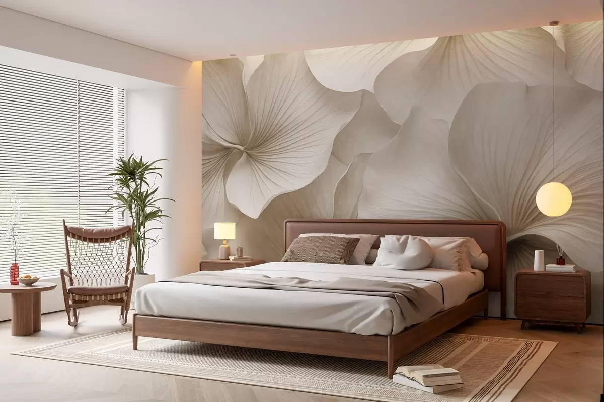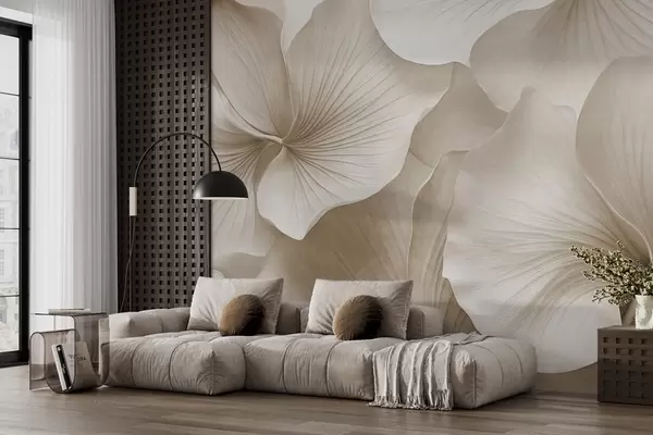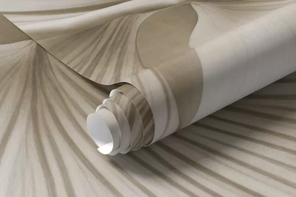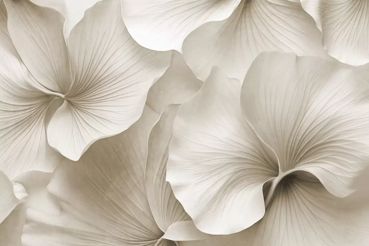 Fototapeten Weiße und beige Ginkgoblätter, weiche Textur, abstrakter Blumenhintergrund, minimalistischer moderner Stil N° w09421v1