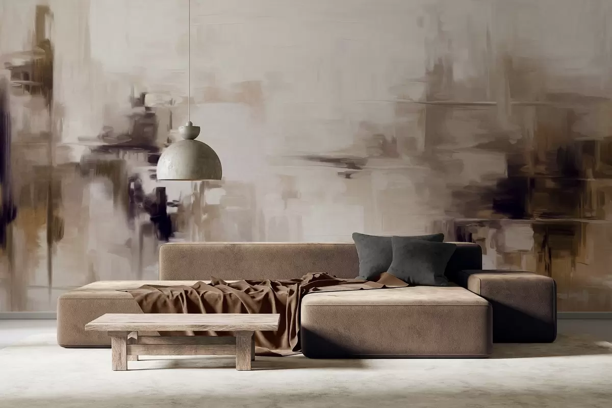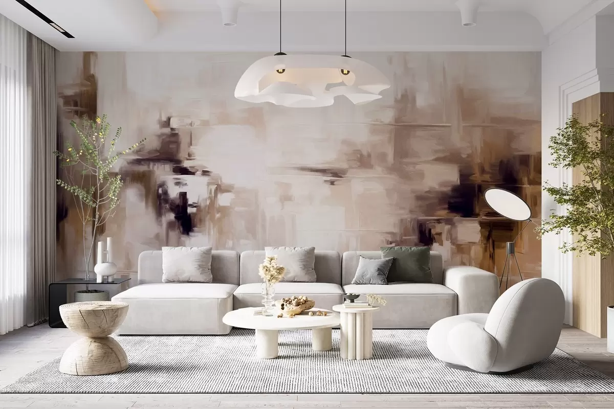Fototapeten Abstrakte Landschaftsmalerei-Imitation mit braunen und weißen Pinselstrichen, moderner Stil N° w09422v1