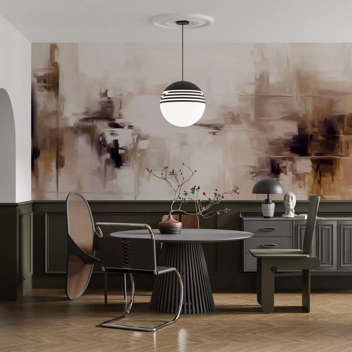 Fototapeten Abstrakte Landschaftsmalerei-Imitation mit braunen und weißen Pinselstrichen, moderner Stil N° w09422v1