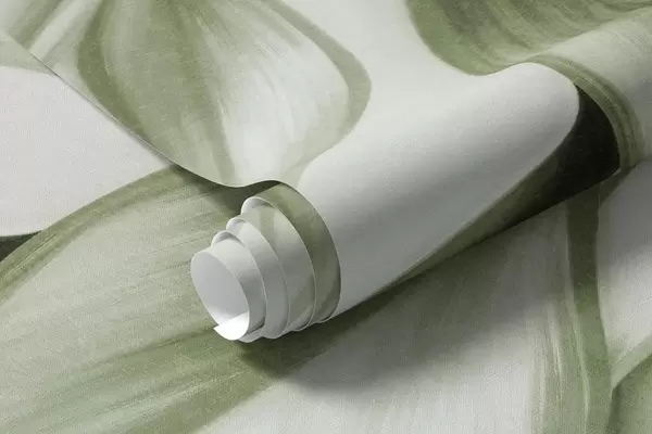 Fototapeten Strukturierte, gedeckte grüne Blätter, heller Hintergrund, elegantes und künstlerisches Design, moderner Stil N° w09429v1