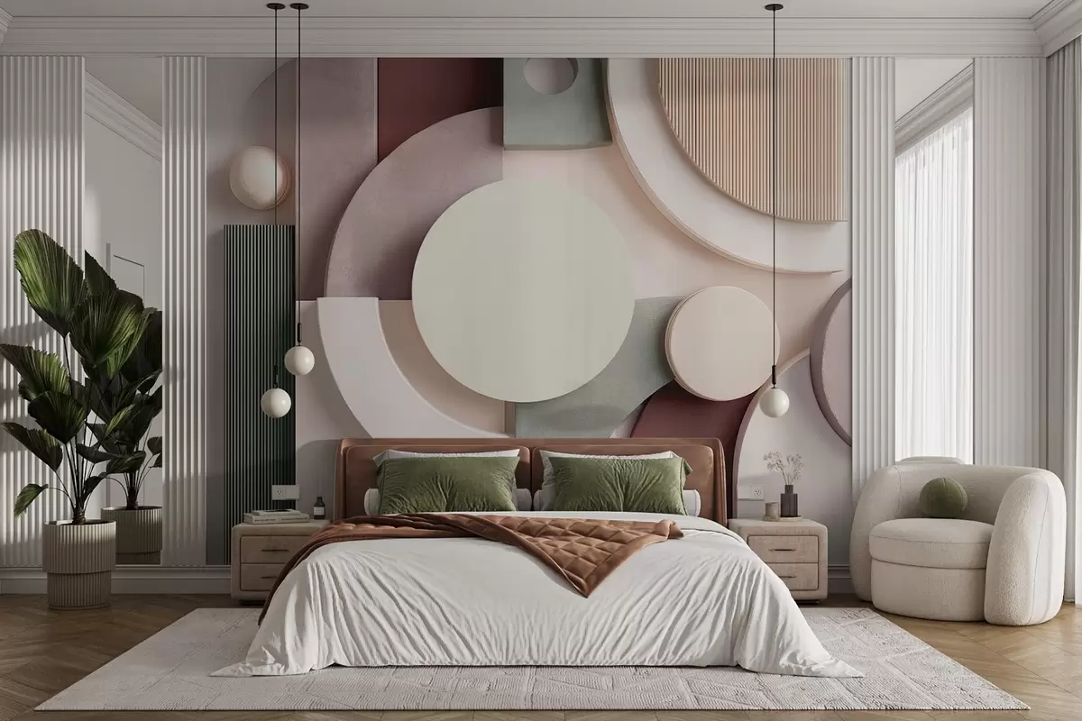 Fototapeten Moderne volumetrische Abstraktion in sanften Farbtönen N° w09441