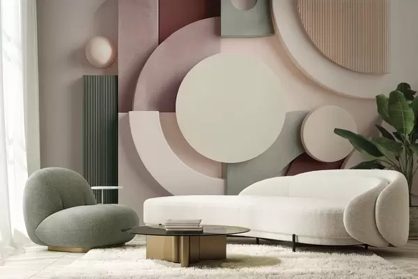 Fototapeten Moderne volumetrische Abstraktion in sanften Farbtönen N° w09441
