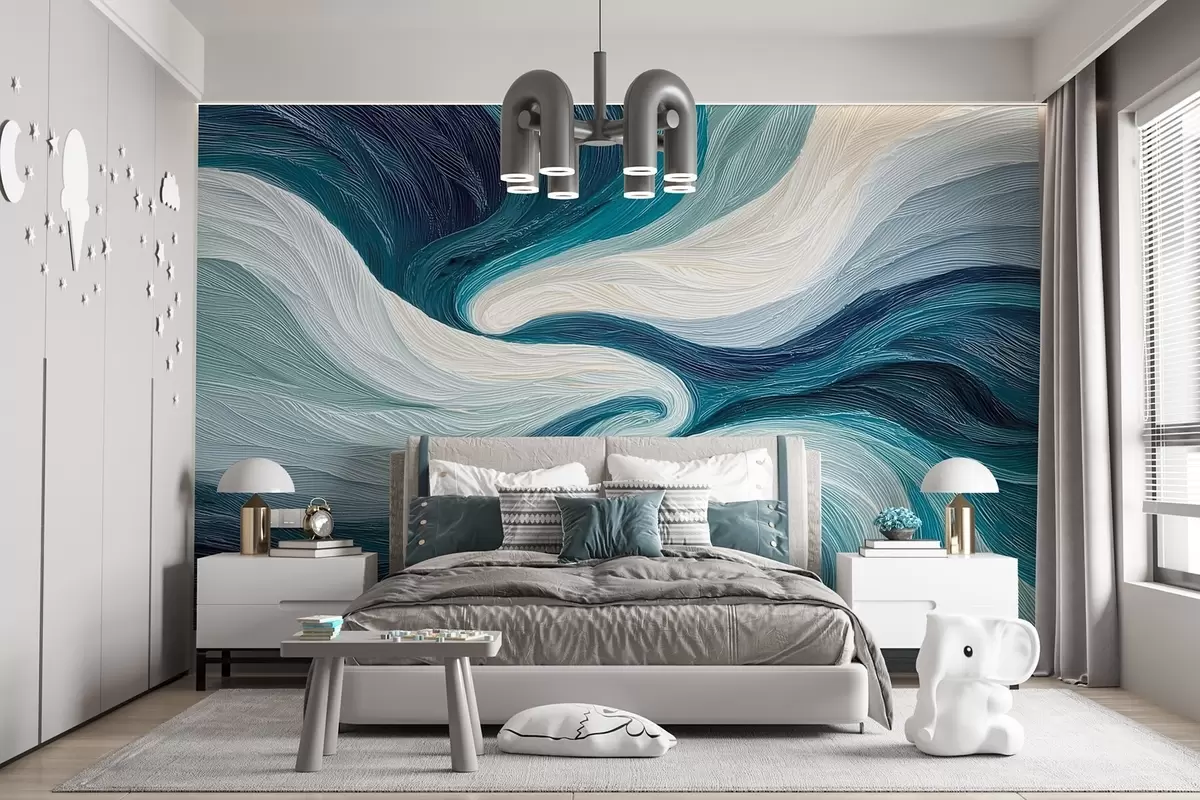 Fototapeten Abstrakte Wasser- und Windmotive in kühlen Farbtönen N° w09453
