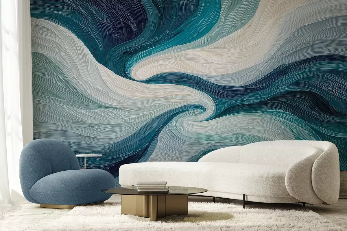 Fototapeten Abstrakte Wasser- und Windmotive in kühlen Farbtönen N° w09453