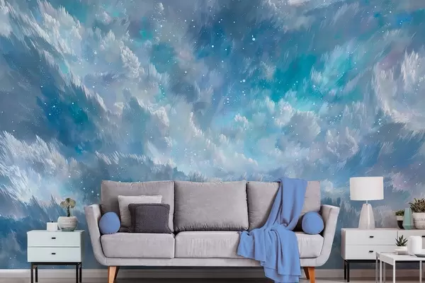 Fototapeten Himmlische abstrakte Wolken in einer kühlen Pastellpalette N° w09459