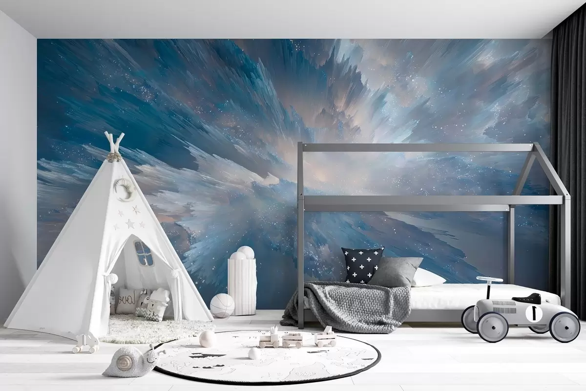 Fototapeten Abstrakter kosmischer Himmelsglanz in eisigen Blautönen N° w09461
