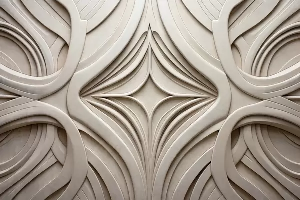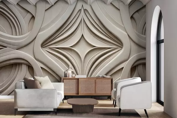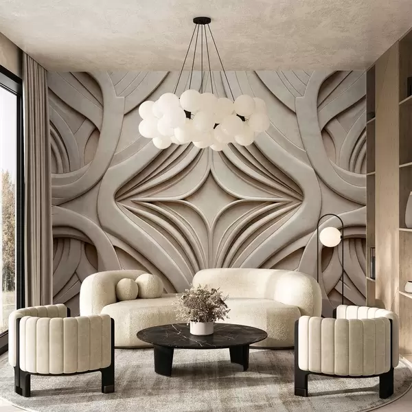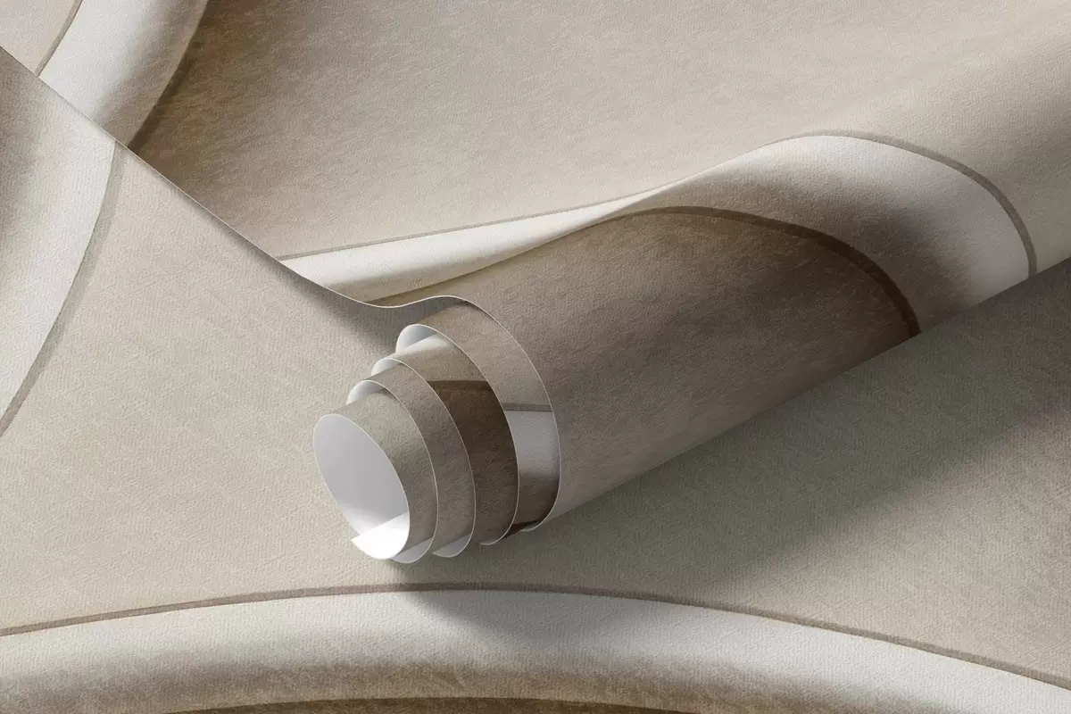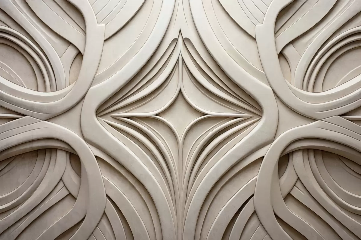 Fototapeten Abstrakter symmetrischer geometrischer Druck mit Struktur, hellbeige Farbe, Art-Déco-Stil, aufwendige Details N° w09473