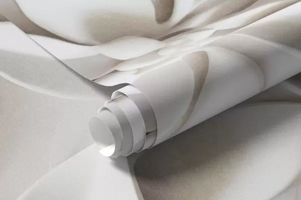 Fototapeten Weiße strukturierte Blumen und Blätter, Blumenarrangement, elegantes Design, minimalistischer Stil, dekorative Kunst N° w09479