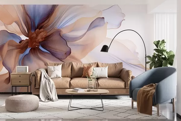 Fototapeten Detaillierte, großflächige Blume mit weißen, blauen und braunen Blütenblättern auf weißem Hintergrund N° w09498