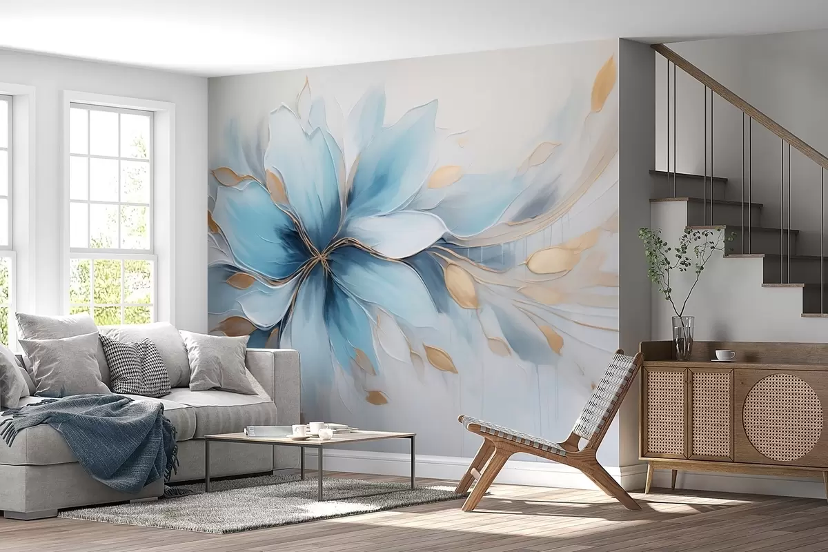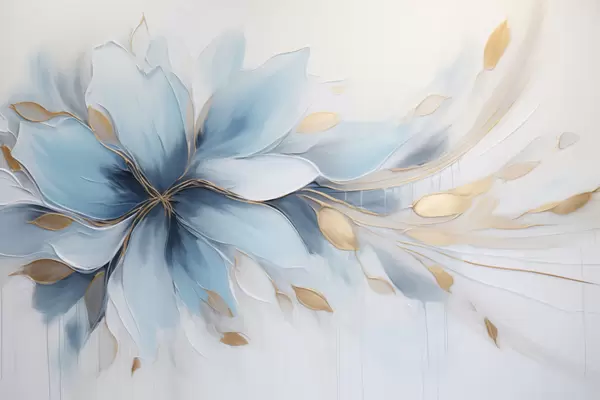 Fototapeten Abstrakte blaue Blume der Ruhe mit Blättern N° w09500