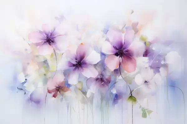 Fototapeten Frühlingsblumen in Rosa- und Violetttönen, Aquarell N° w09502