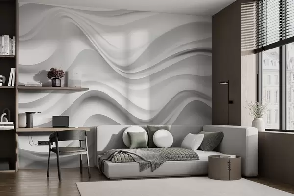 Fototapeten Schwarz-weiße abstrakte 3D-Komposition mit sanften Wellen N° w09506