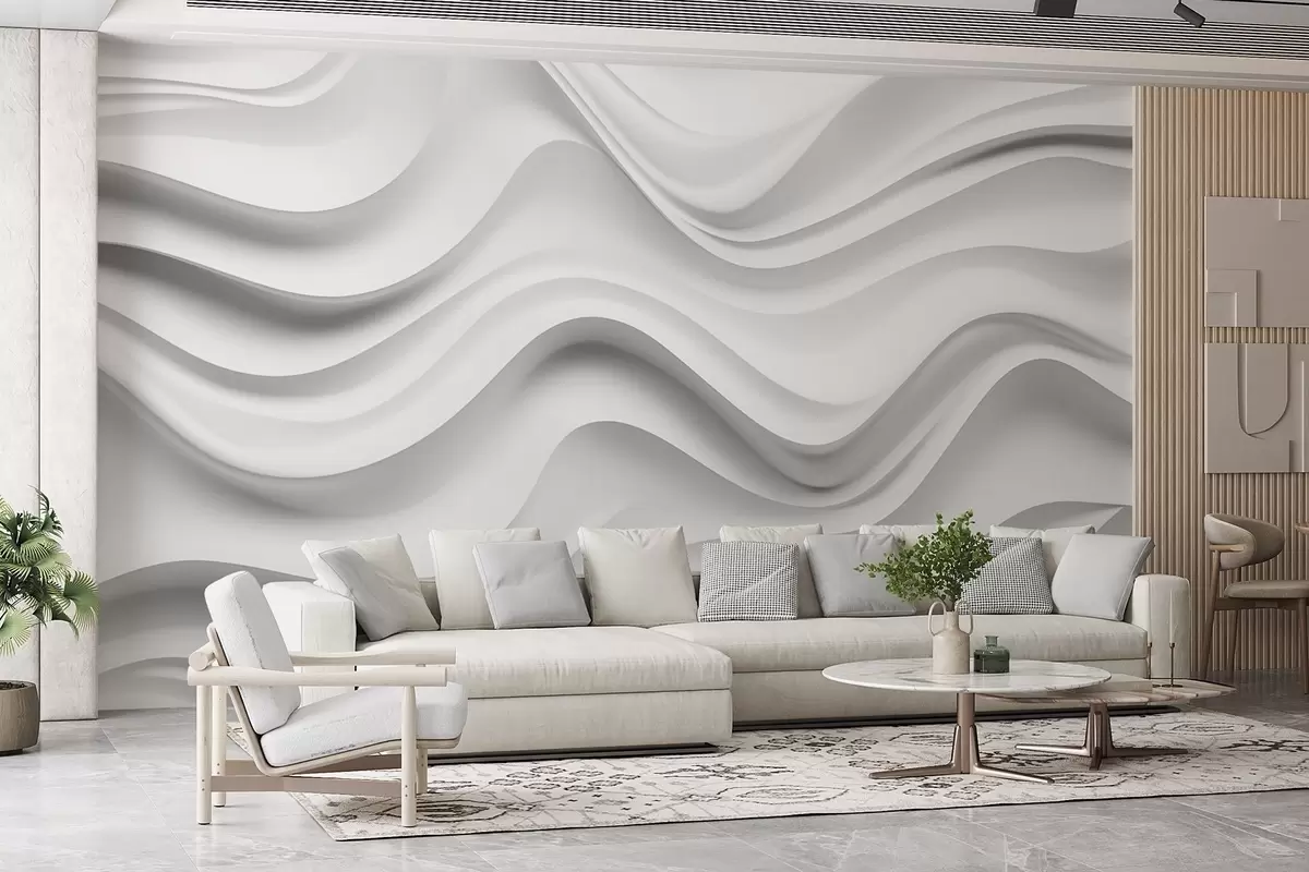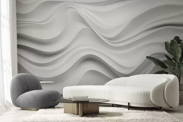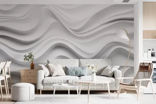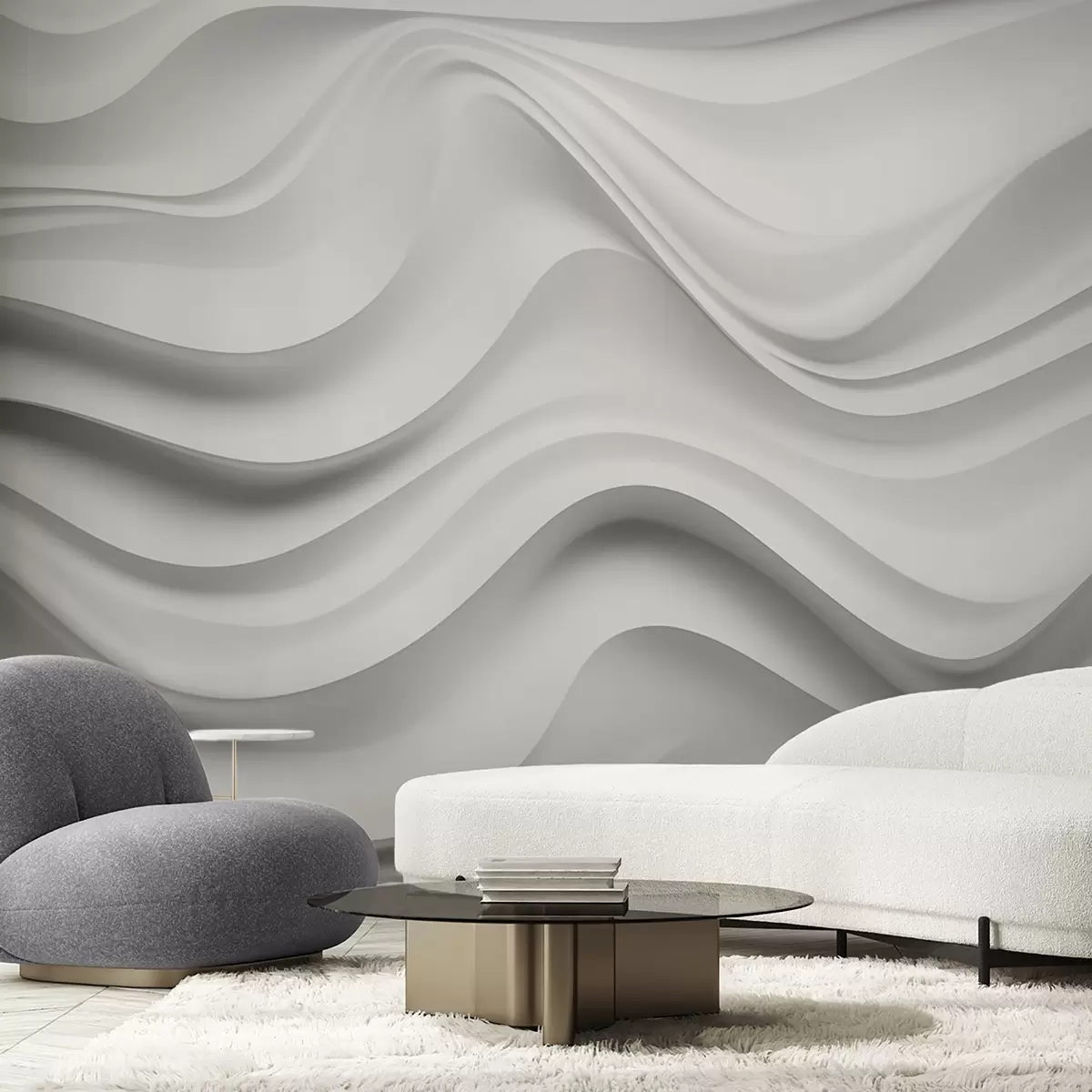 Fototapeten Schwarz-weiße abstrakte 3D-Komposition mit sanften Wellen N° w09506
