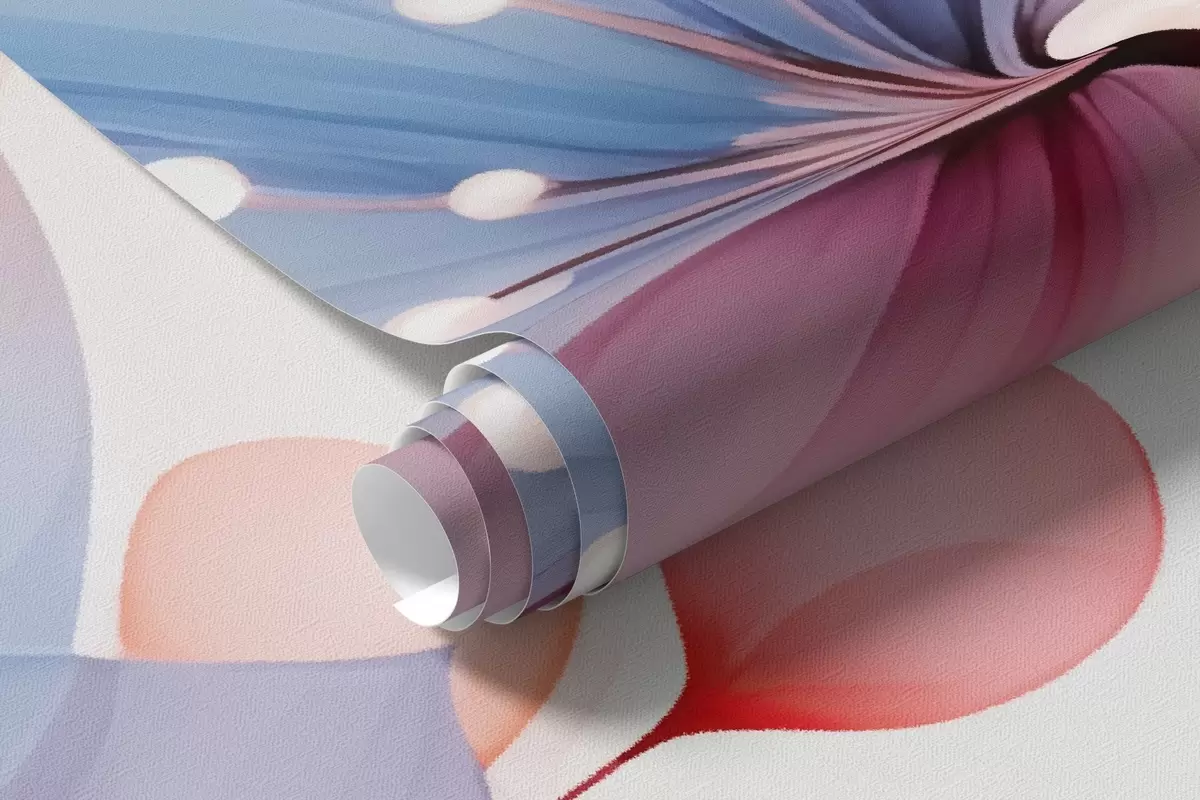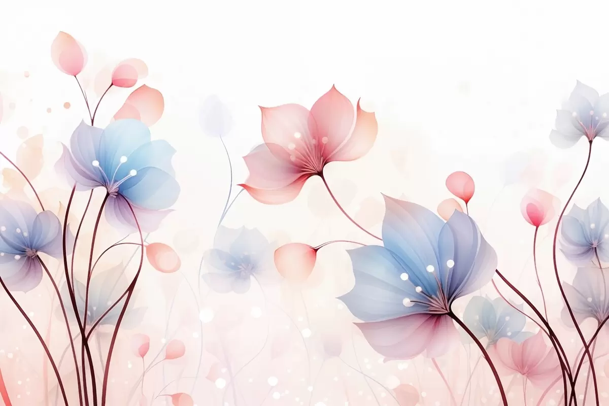 Fototapeten Zarte rosa-blaue Blumen – luftige Flora auf weißem Aquarellhintergrund N° w09507