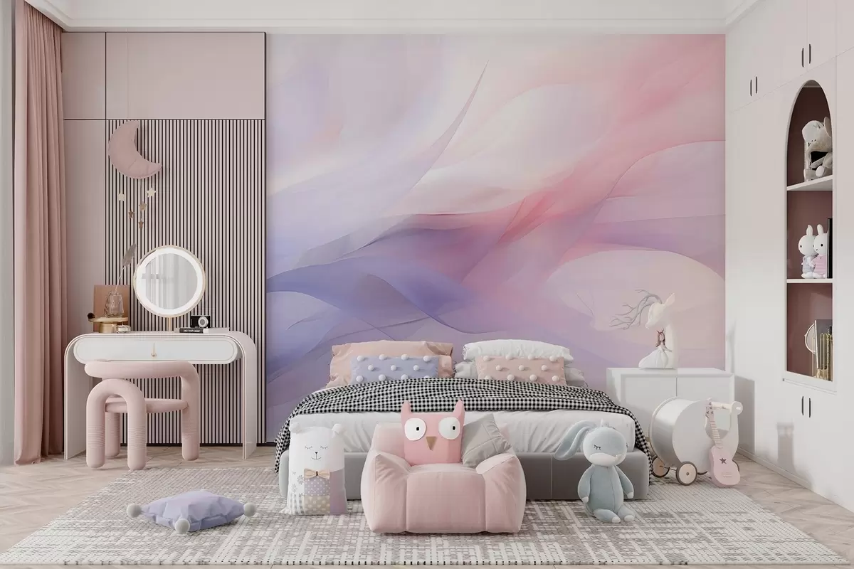 Fototapeten Weiche abstrakte Wellen in Blau- und Rosatönen N° w09508
