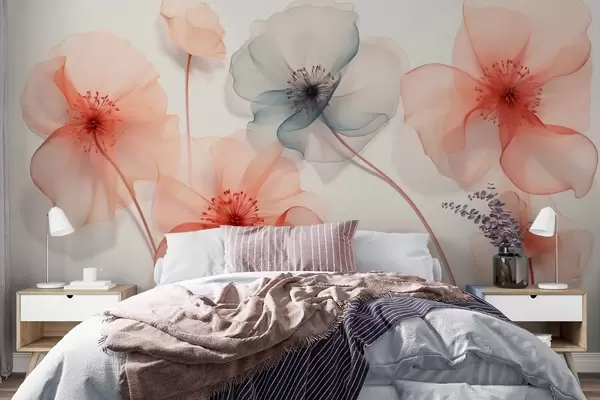 Fototapeten Durchscheinende Blumen in Rot- und Blautönen N° w09515