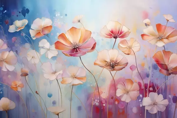 Fototapeten Leuchtende Wildblumen im Aquarell-Splash-Stil N° w09521