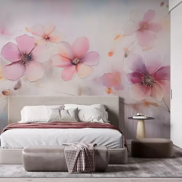 Fototapeten Zweig mit rosa Blüten im Aquarellstil N° w09522