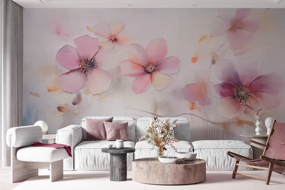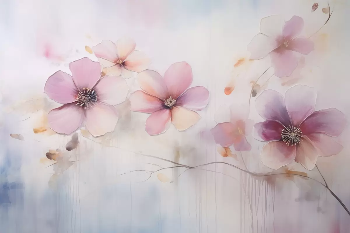 Fototapeten Zweig mit rosa Blüten im Aquarellstil N° w09522