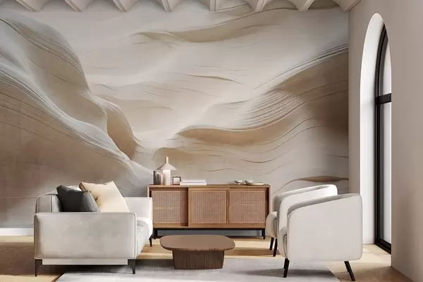 Fototapeten Sandstein-Canyon-Wände mit glatten, fließenden Kurven und Strukturen, natürlicher Schönheit und Minimalismus N° w09533