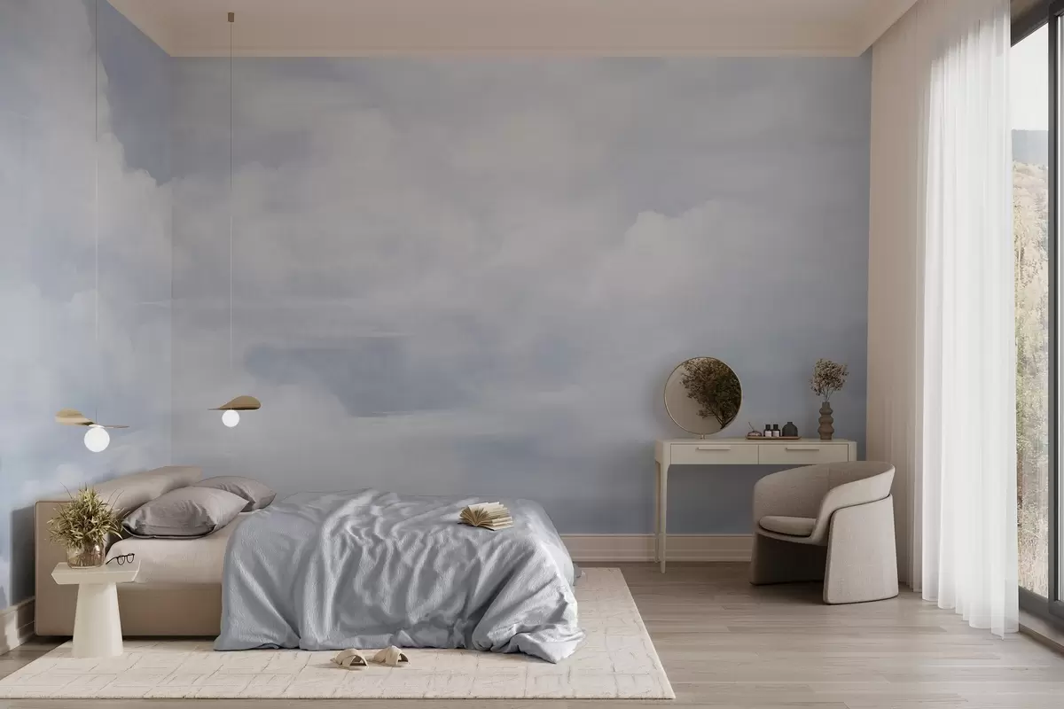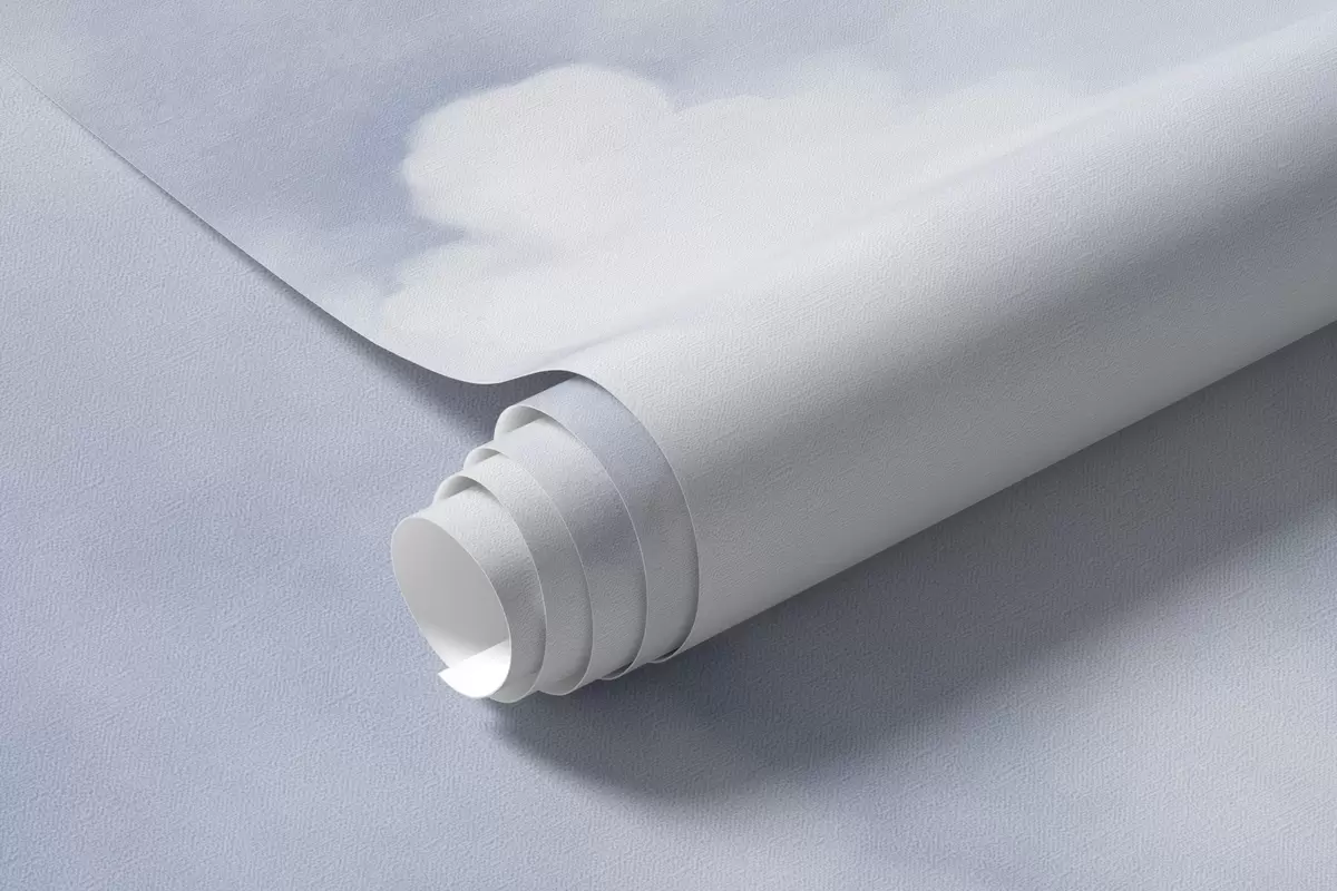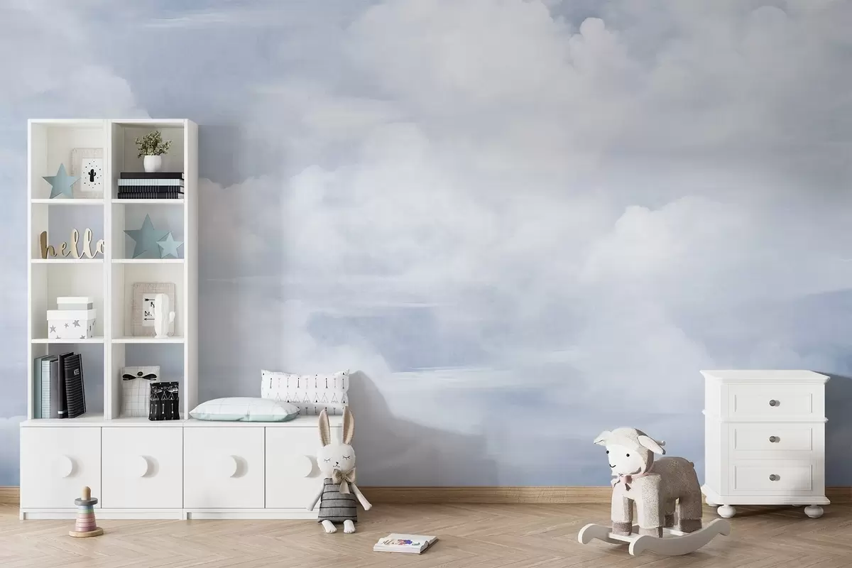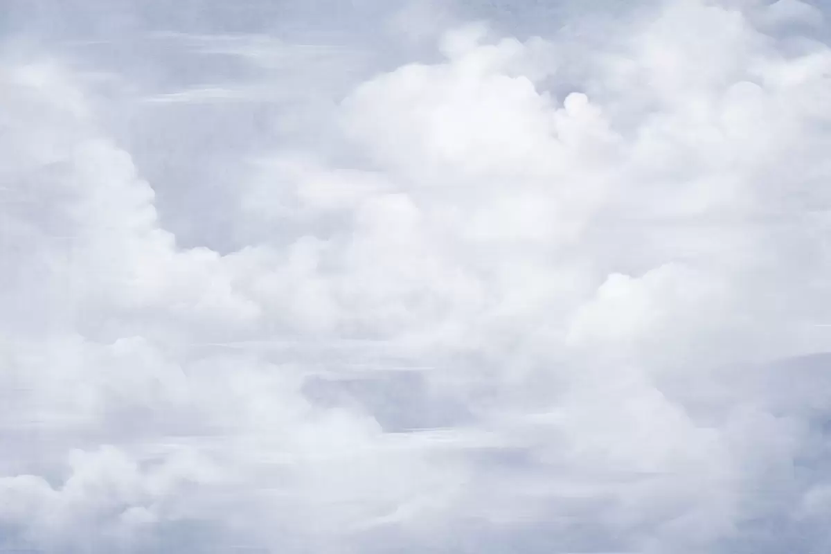 Fototapeten Pastellfarbener, strukturierter Himmel voller weißer Wolken mit sanfter und minimalistischer Ästhetik N° w09589