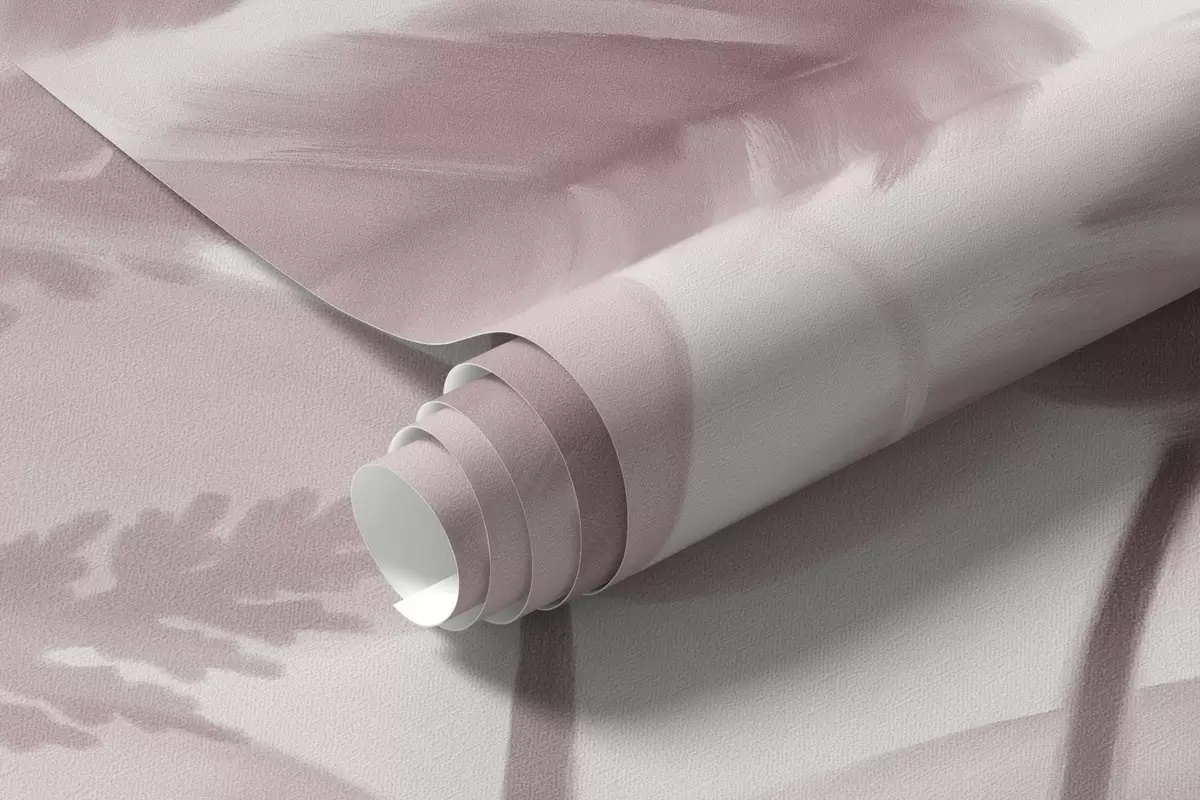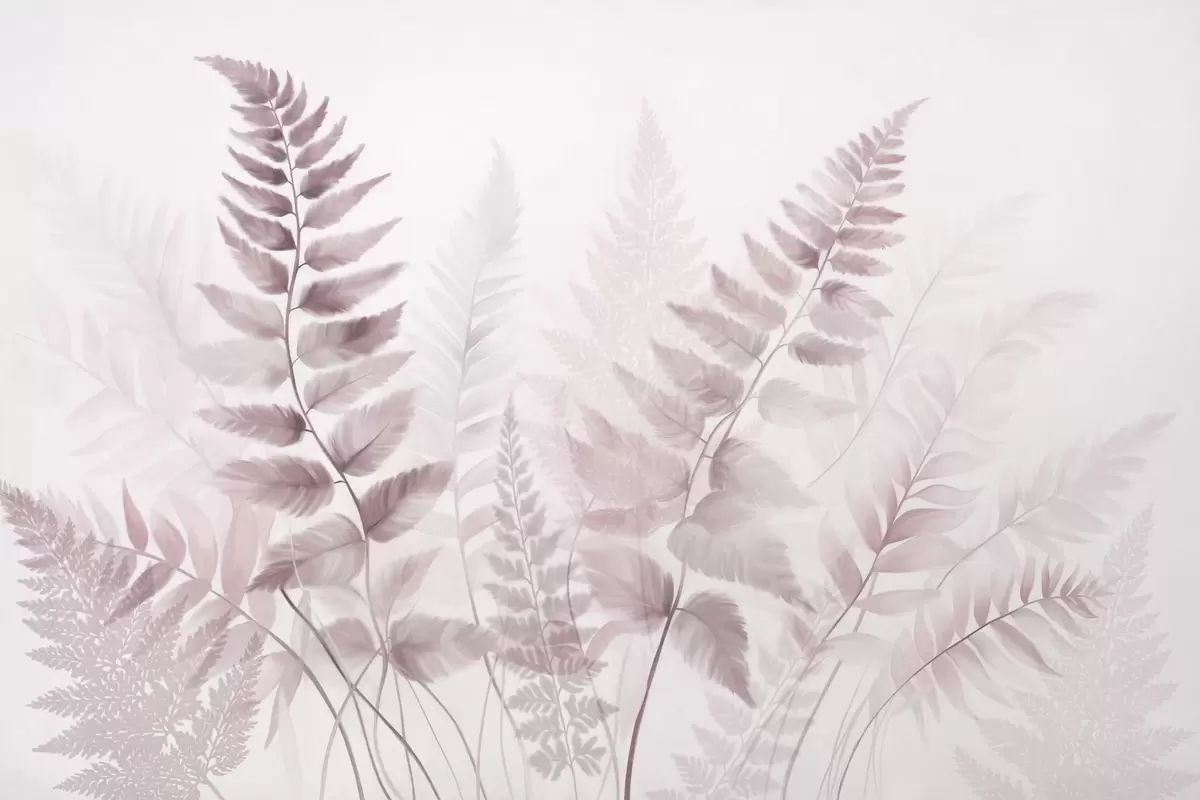 Fototapeten Strukturierte getrocknete Farnwedel in verschiedenen Rosatönen, mit einem weichen, hellen Hintergrund im Aquarellstil N° w09615v2