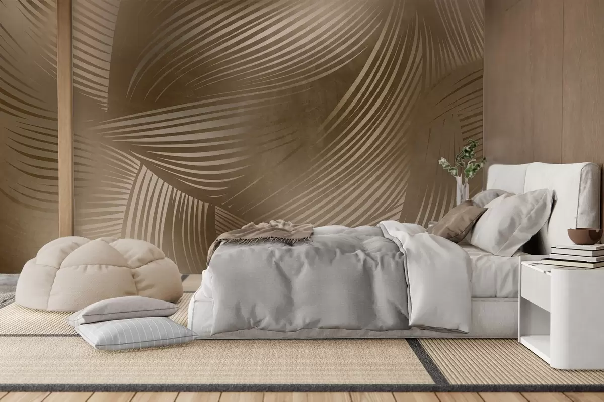 Fototapeten Abstrakter Druck mit fließenden, geschwungenen Linien in Dunkelbrauntönen, die eine strukturierte, moderne Kunst schaffen. N° w09646