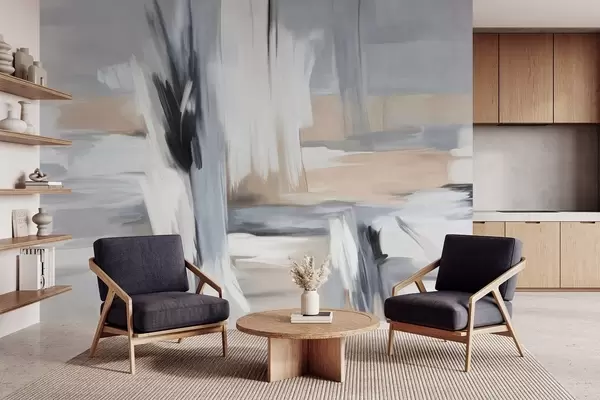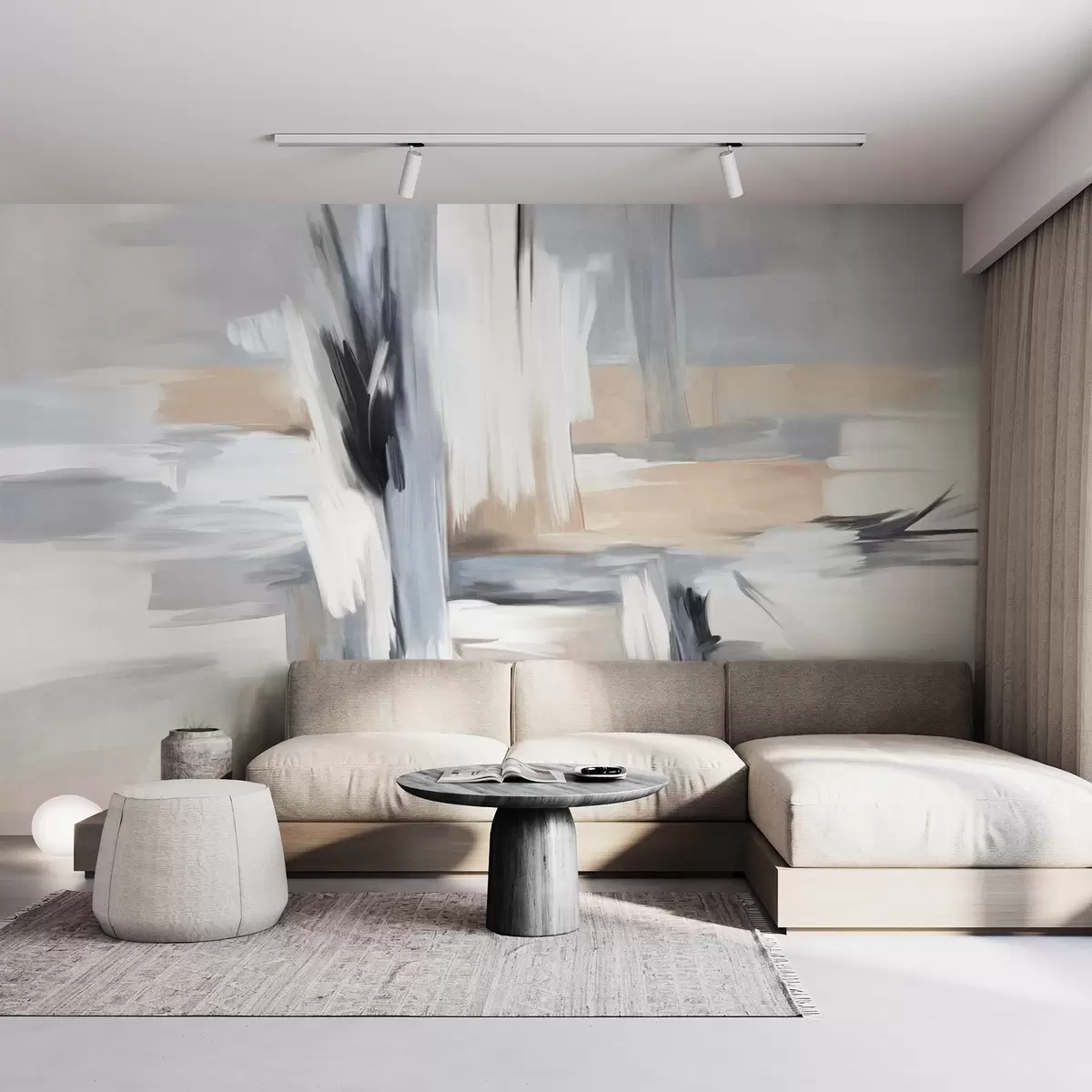 Fototapeten Abstrakter, strukturierter Malstil mit Pinselstrichen in Weiß-, Grau- und Beigetönen N° w09651