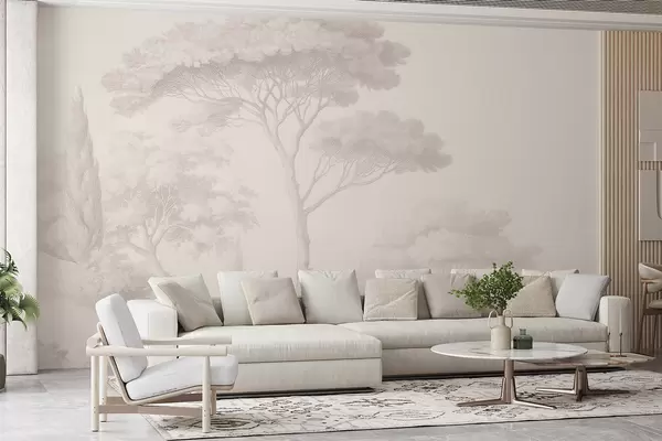 Fototapeten Ruhige Waldlandschaft in einer beigefarbenen Farbpalette N° w09685