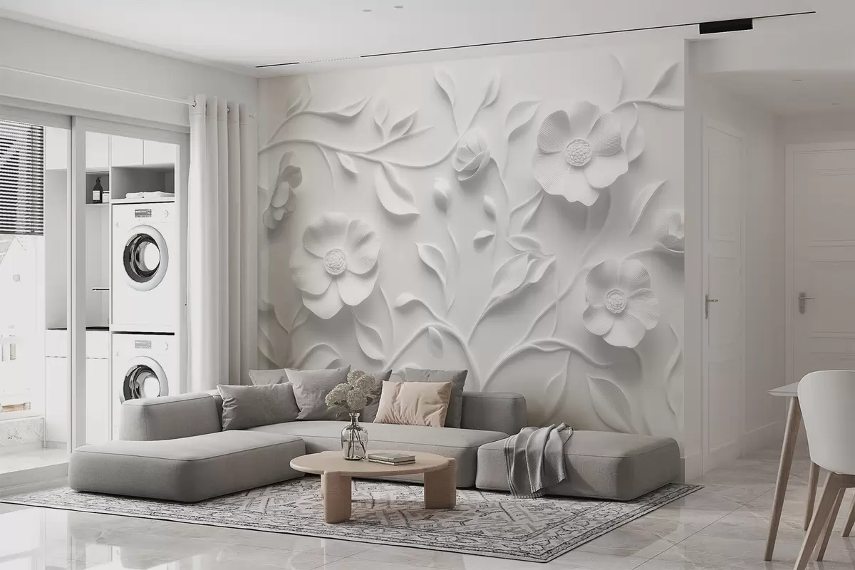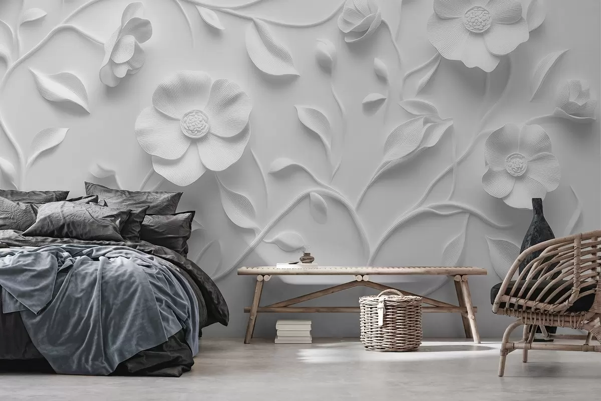 Fototapeten Graues geprägtes Blumenornament N° w09710