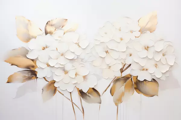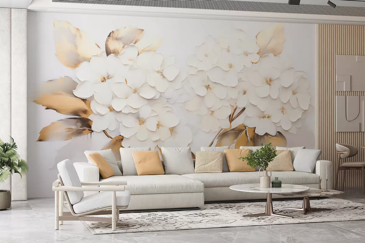 Fototapeten Luxuriöse Hortensien mit gelben Blättern N° w09711