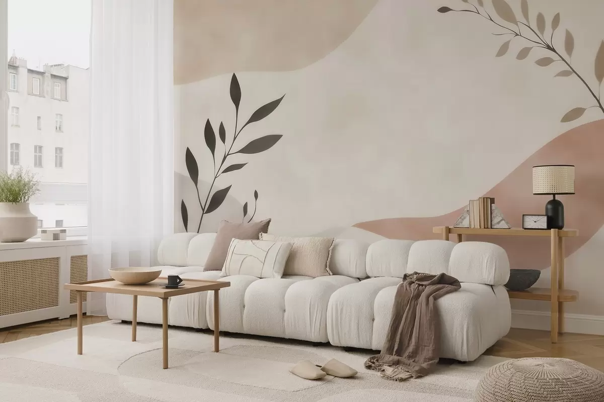 Fototapeten Abstrakte beige-pfirsichfarbene Wellen mit Zweigen N° w09722