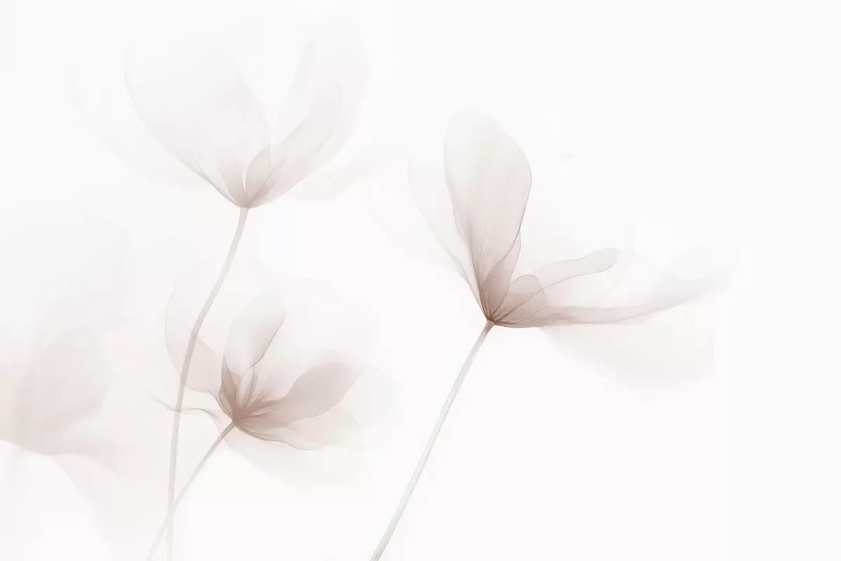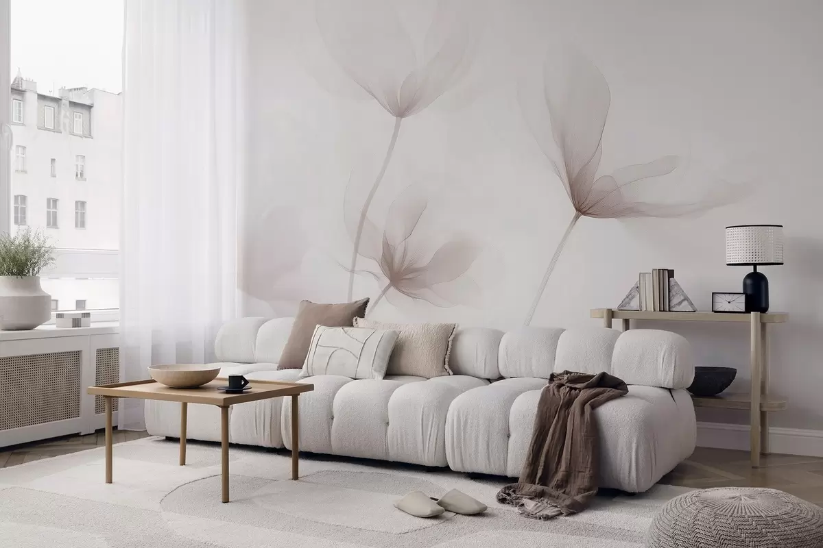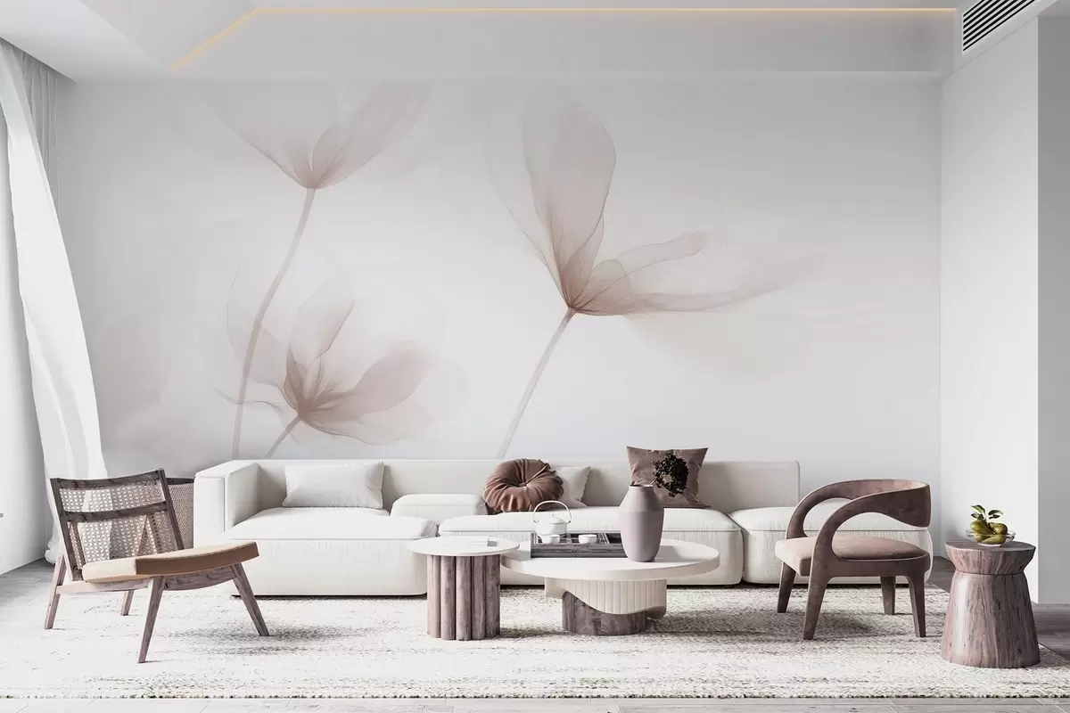 Fototapeten Luftige beige Blumen in minimalistischem, hellem Stil N° w09734