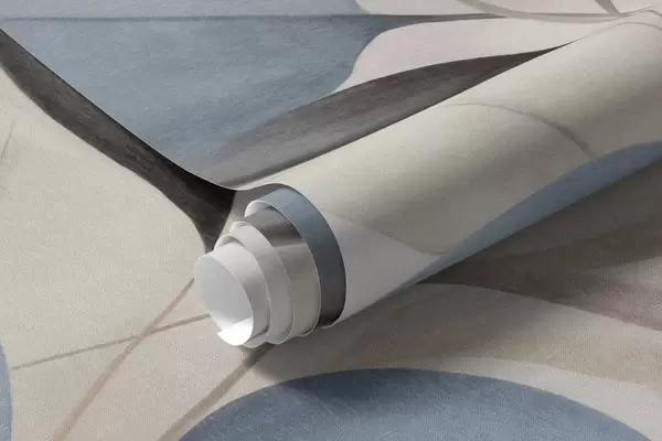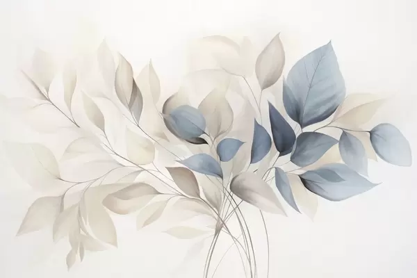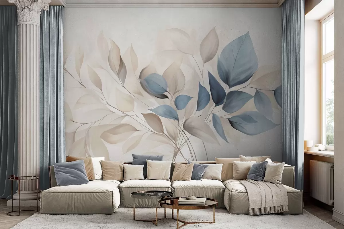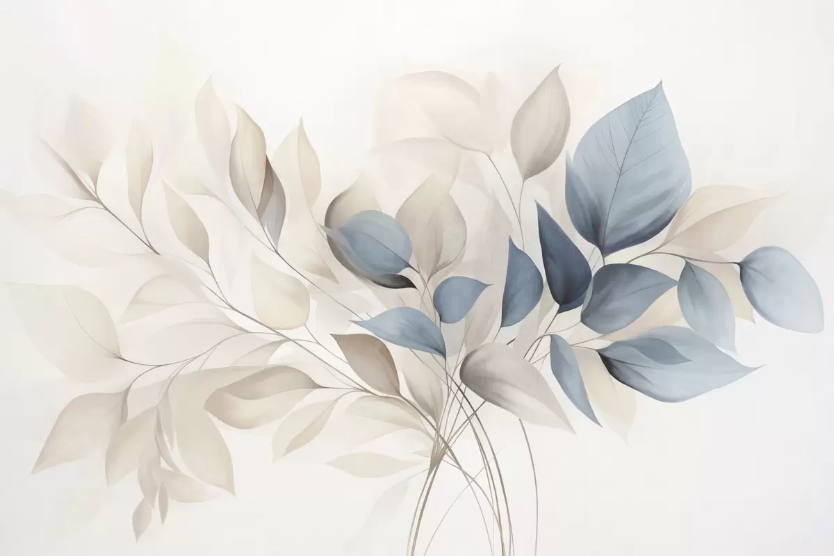 Fototapeten Abstrakte durchscheinende Blätter in Blau-, Beige- und Cremetönen, strukturierte Kunst N° w09744