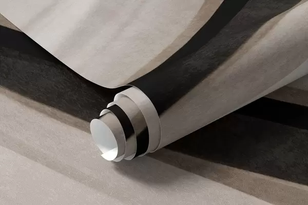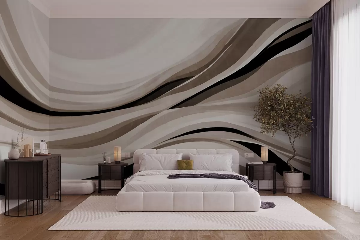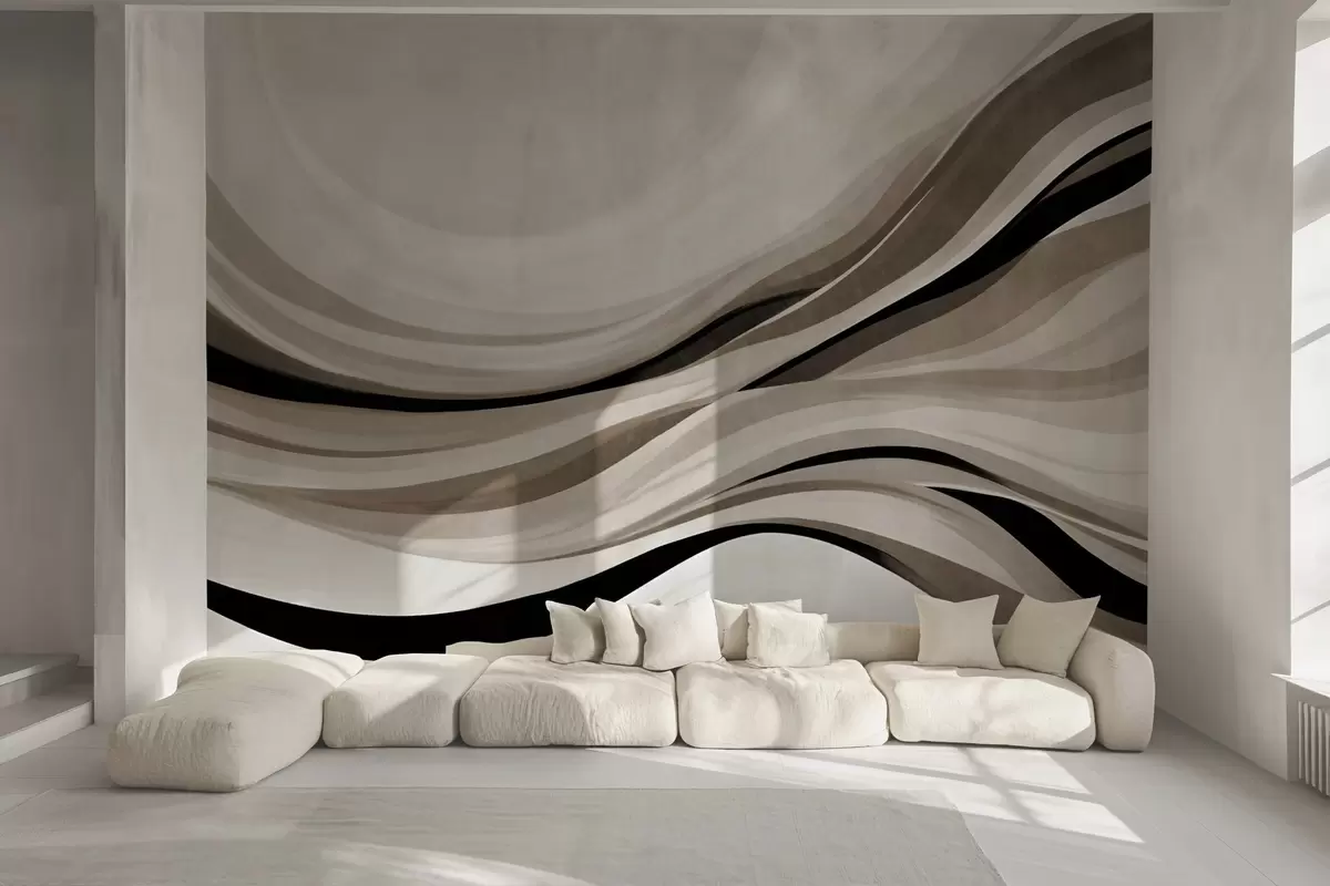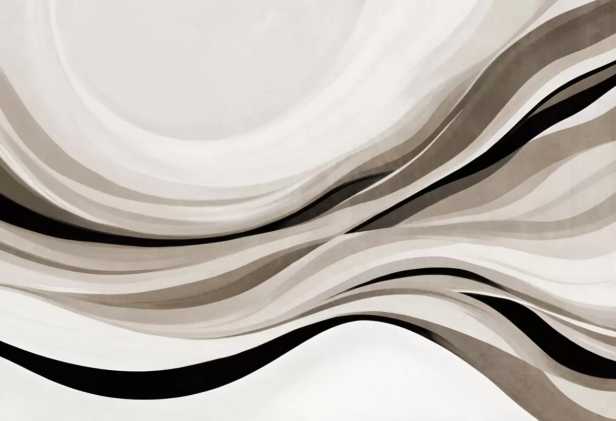 Fototapeten Abstrakte Wellenlinien in Beige- und Schwarztönen vor hellem Hintergrund, strukturierte Kunst N° w09748