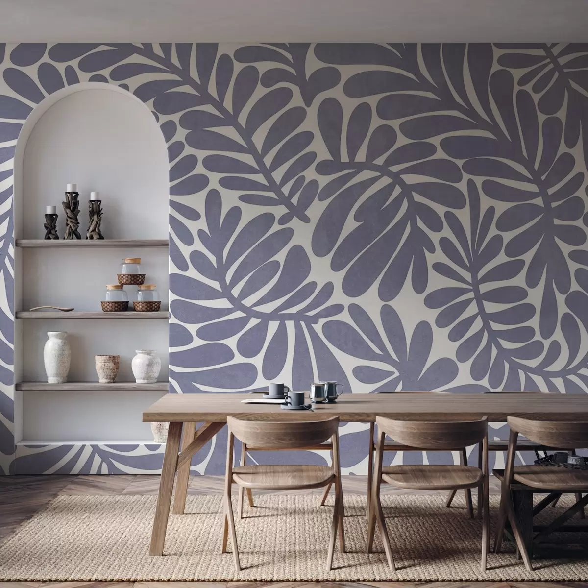 Fototapeten Stilisierte hellblaue Blätter vor einem hellen Hintergrund, strukturierte Grafik N° w09775v1
