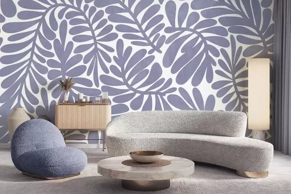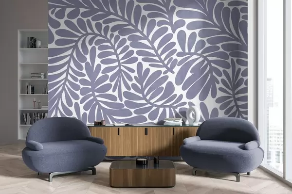 Fototapeten Stilisierte hellblaue Blätter vor einem hellen Hintergrund, strukturierte Grafik N° w09775v1