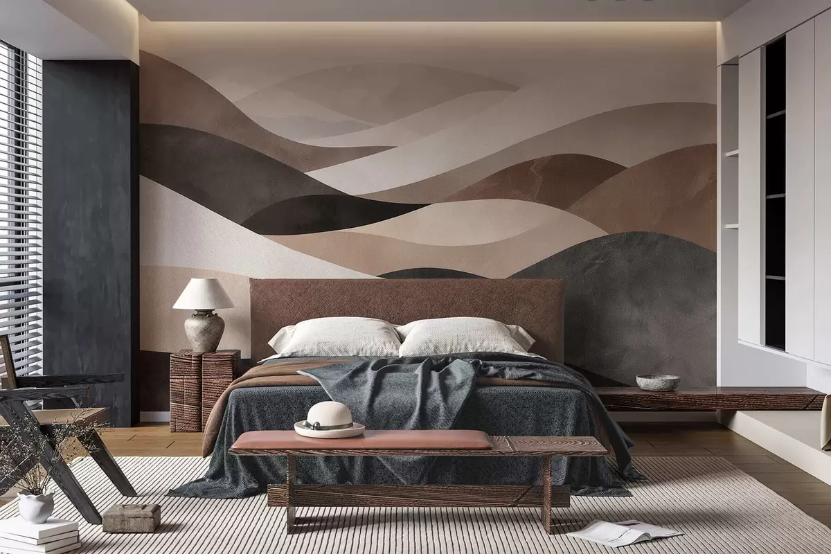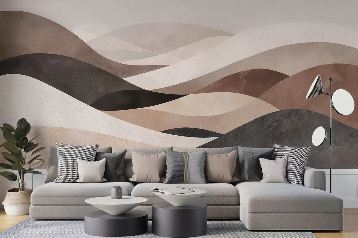 Fototapeten Abstrakte Wellen in sandigen Beigetönen N° w09792
